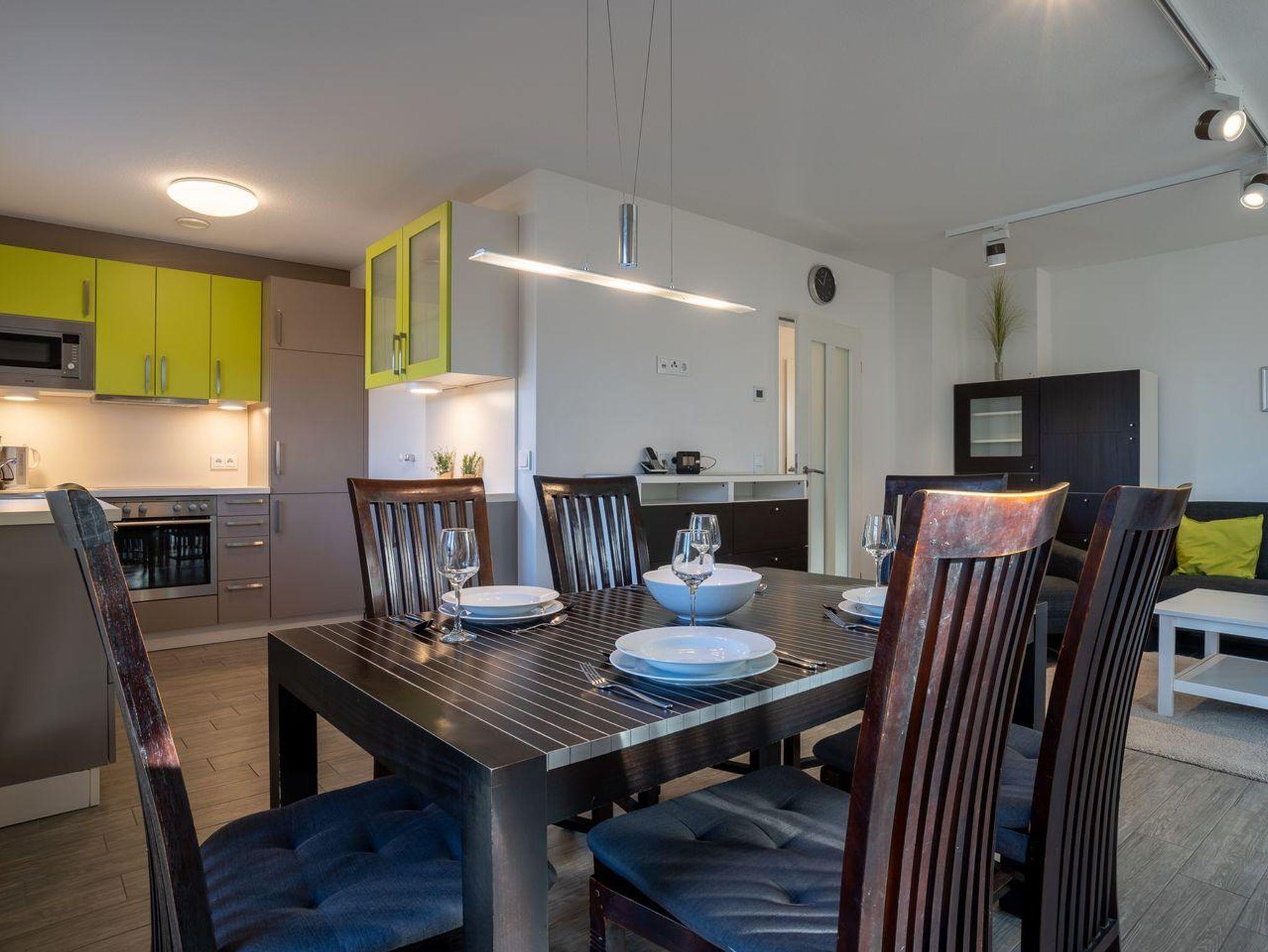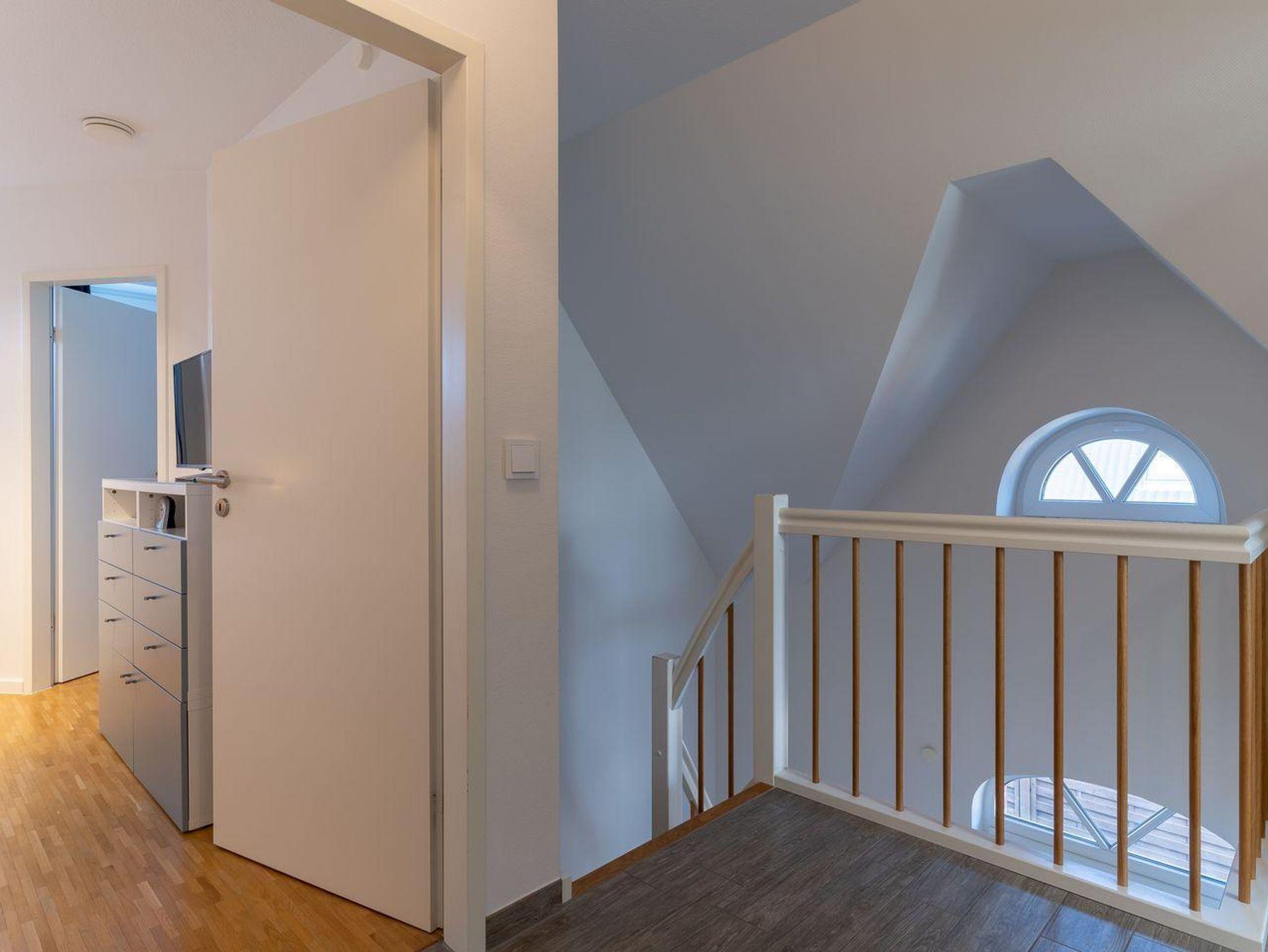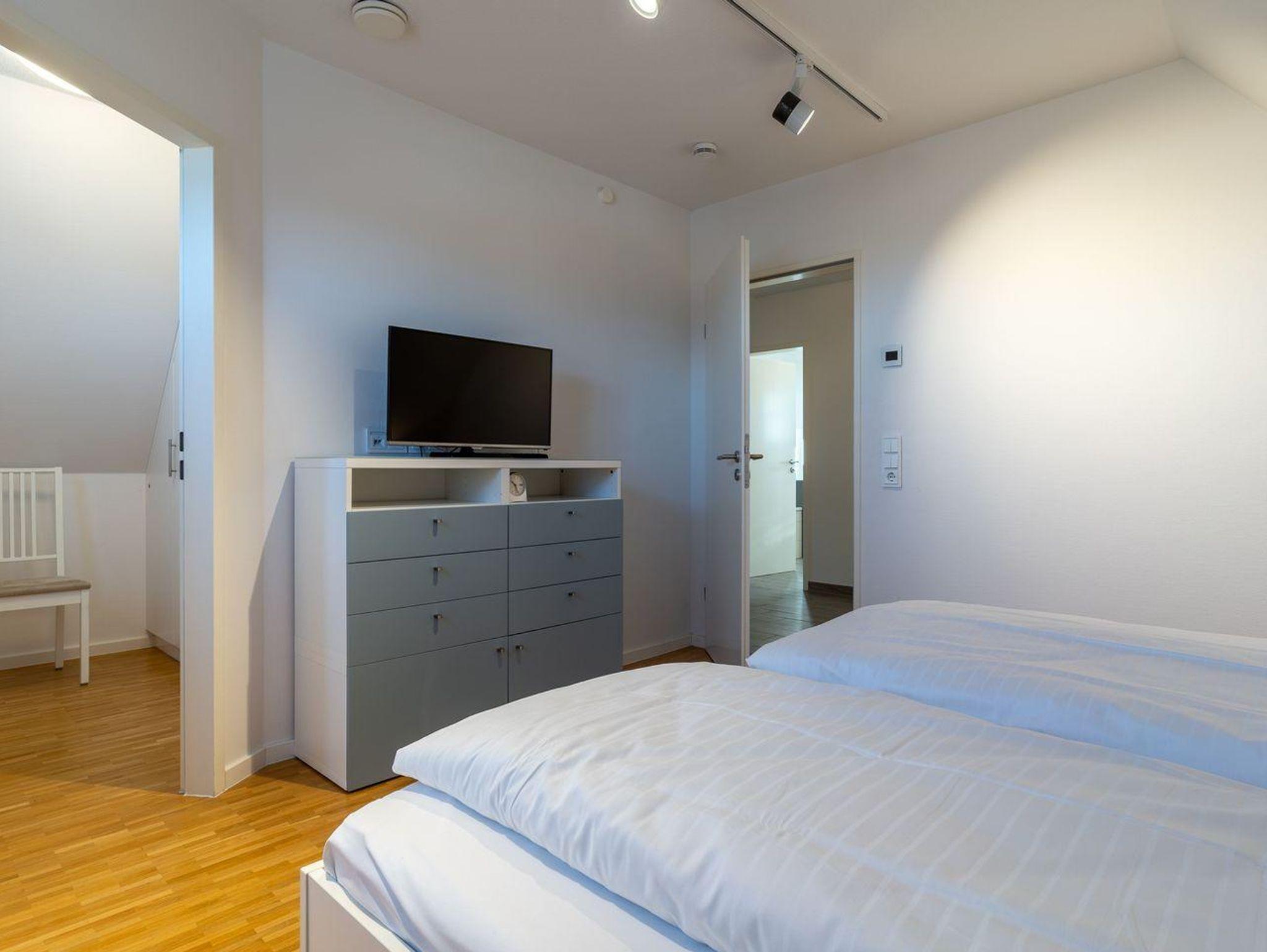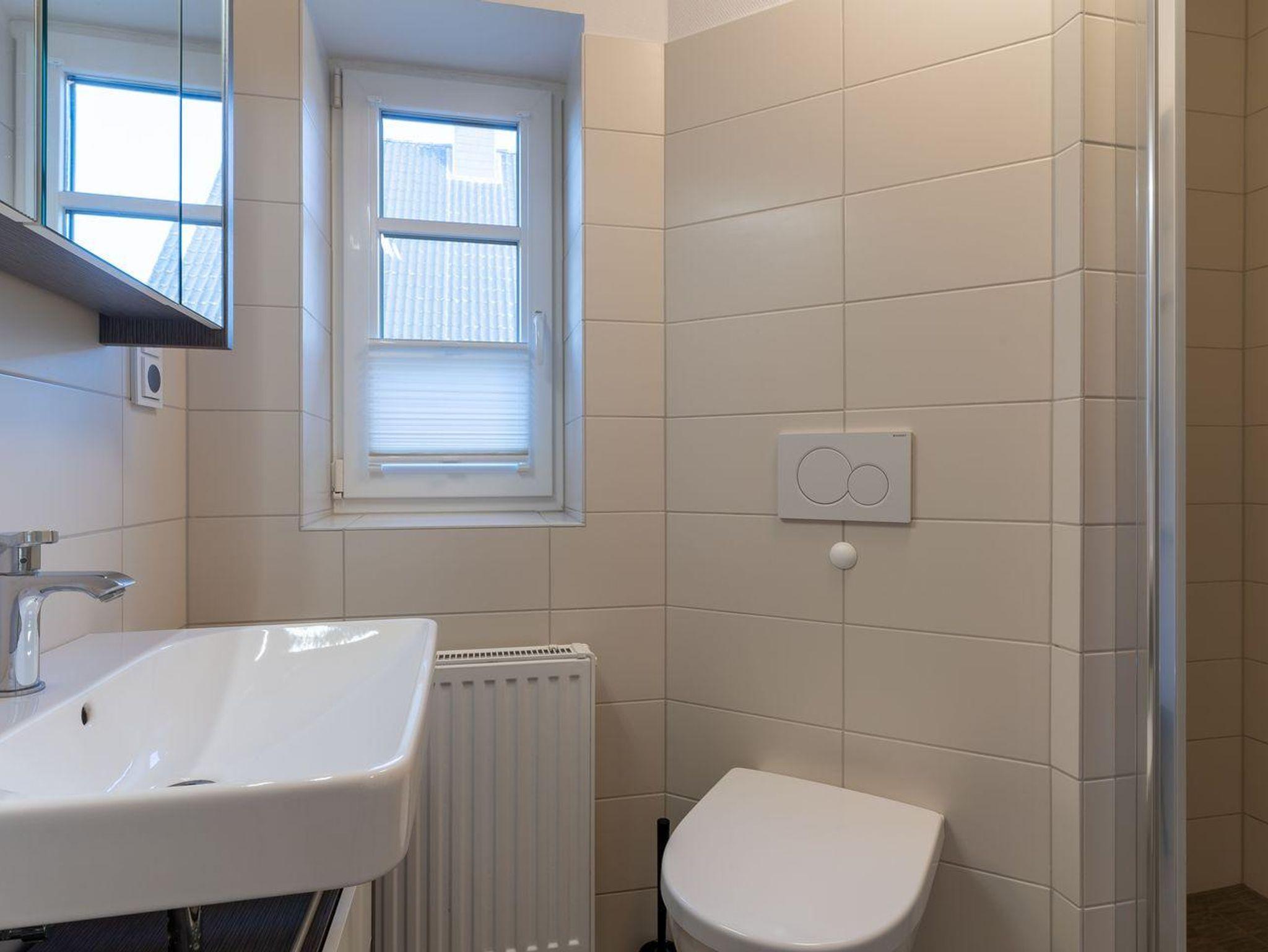 Im Erdgeschoss des Hauses befindet sich das geräumige Wohn-Esszimmer mit integrierter gut ausgestatteter Küche, einem Essbereich mit 6 Sitzplätzen und einer gemütlichen Sofaecke. Außerdem ein Schlafzimmer mit Doppelbett, ein Duschbad mit WC und einen Wirtschaftsraum mit Waschmaschine. Vom Wohnzimmer gelangen Sie auf die schöne Terrasse mit Terrassenmöbeln. Im Obergeschoss finden Sie ein Schlafzimmer mit einem Doppelbett und TV, sowie ein Schlafzimmer mit zwei Einzelbetten mit Fallschutz und ein Vollbad mit Badewanne/Dusche und WC. Das Haus wird mit Fußbodenheizung im EG und Zentralheizung im OG beheizt. Zusätzlich hat dieses Haus ein zentrales Lüftungssystem. Das Haus hat einen Fahrradabstellraum und einen PKW-Stellplatz.