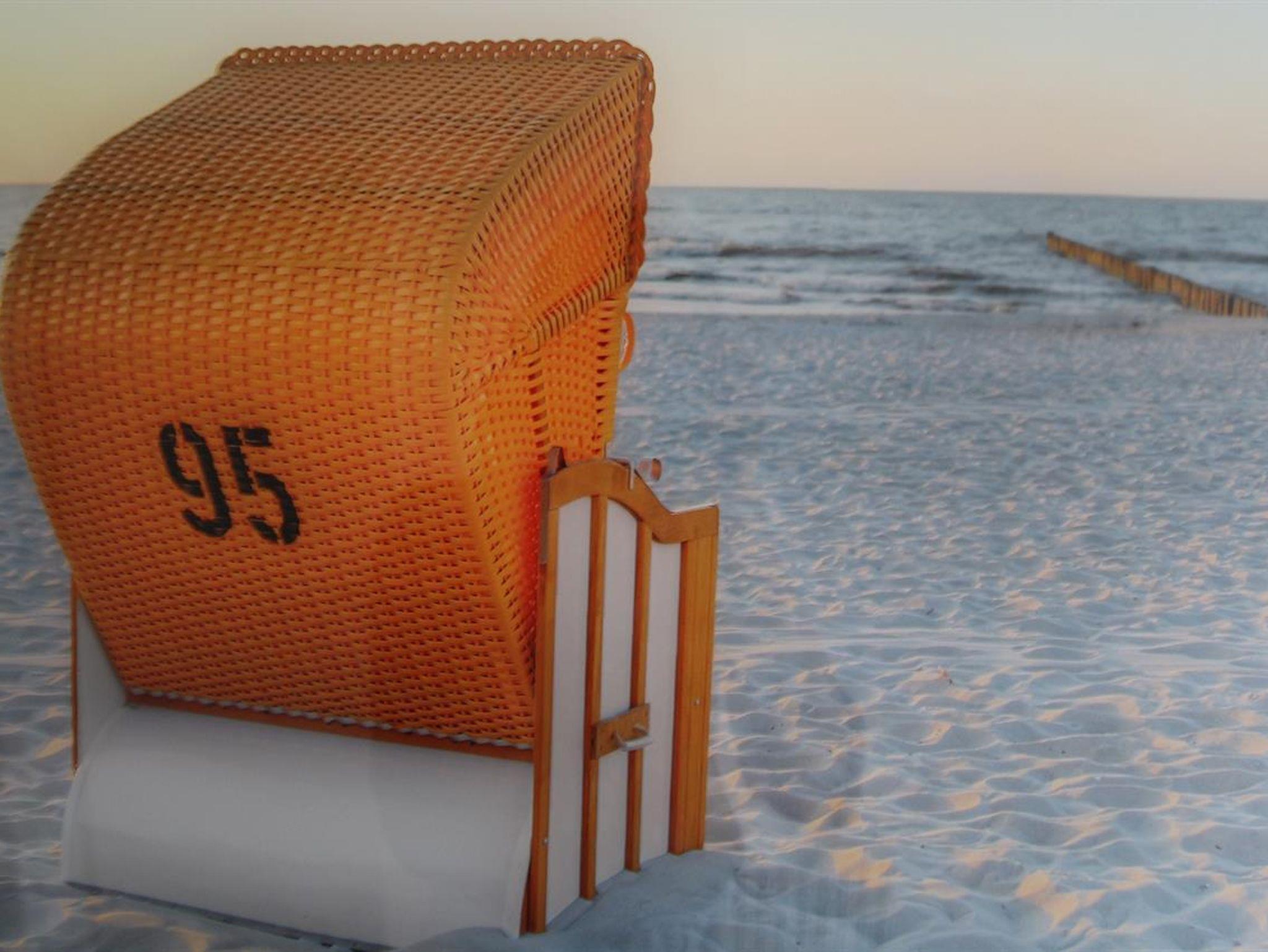 Auf die Kinder warten Bobby Car, Dreirad, Kicker und unsere große Sandspielecke, in der auch ein Strandkorb zum Verweilen einlädt.