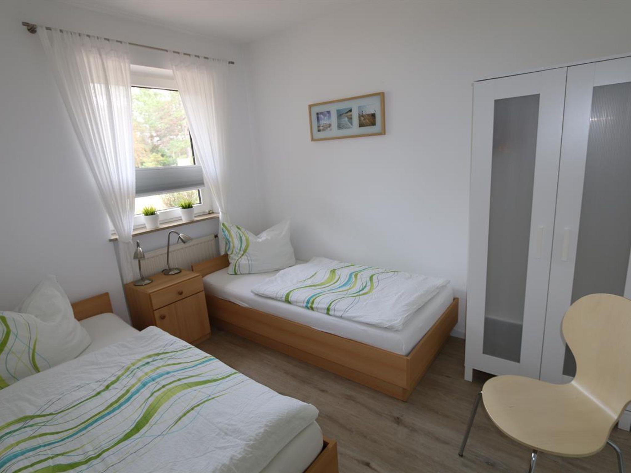 Schlafzimmer mit 2 Einzelbetten, Duschbad, Flur mit Garderobe und Einbauschränken, separater Eingang, Südwest-Balkon