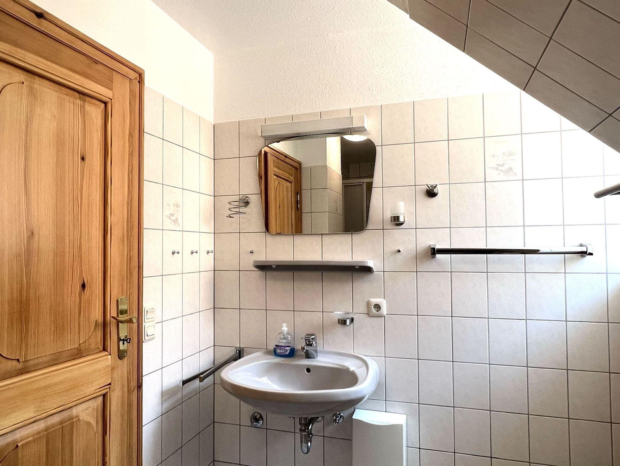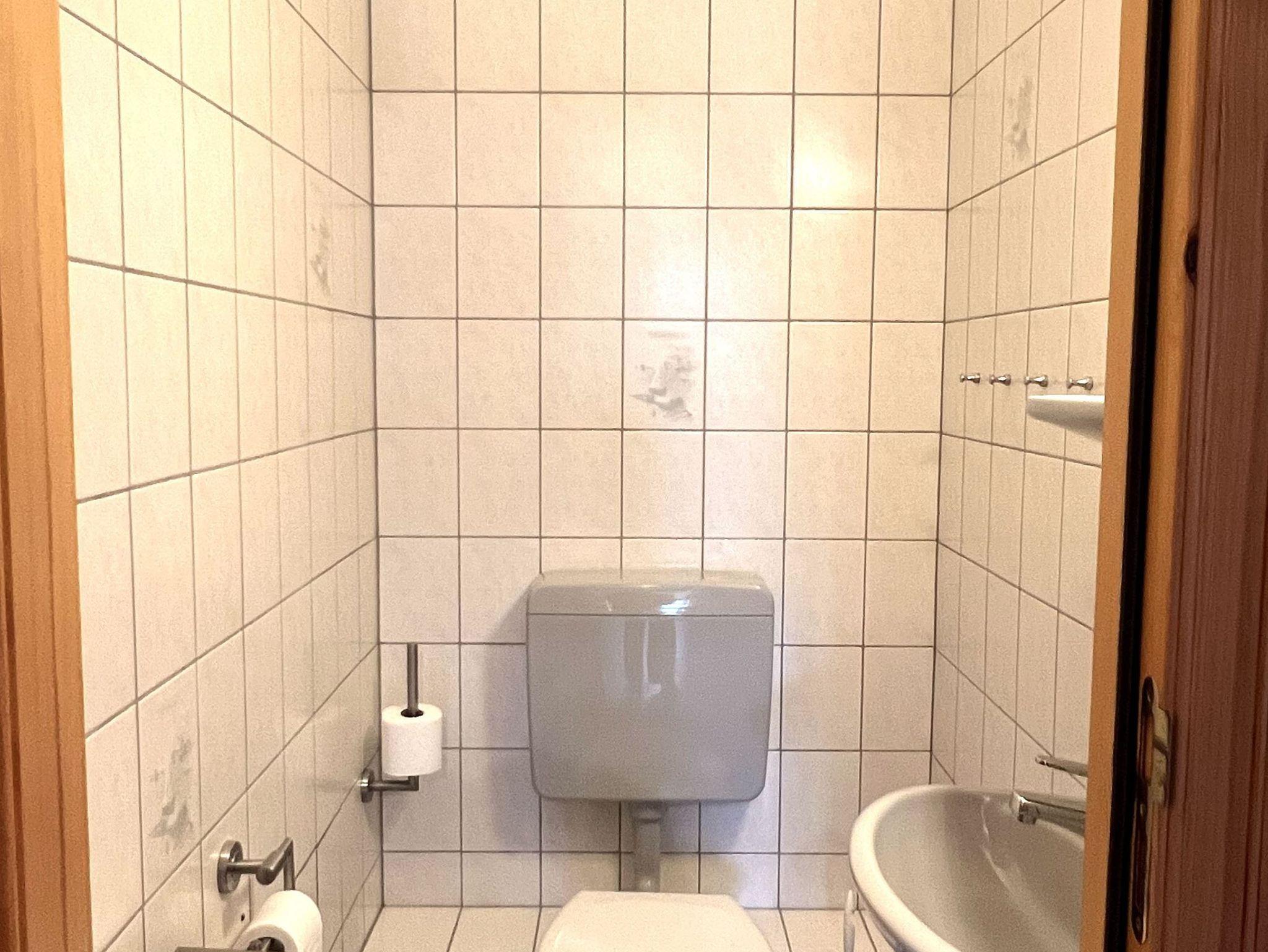 Die Wohnung verfügt über ein hellgekacheltes Badezimmer sowie ein zusätzliches Gäste-WC, das den Komfort erhöht.