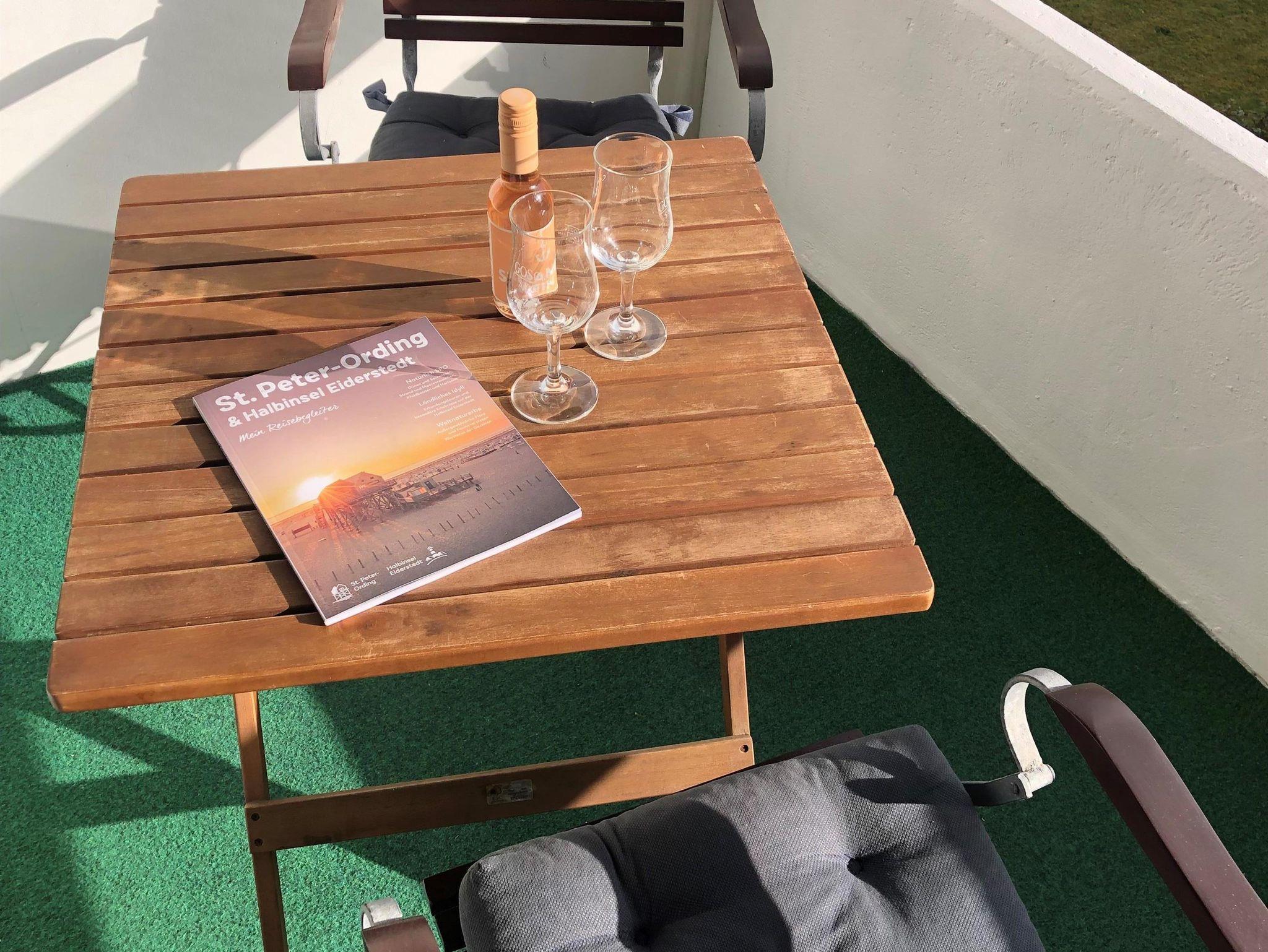 mittendrin in Sankt Peter-Ording, mit überdachtem Balkon und Parkplatz in der Tiefgarage.