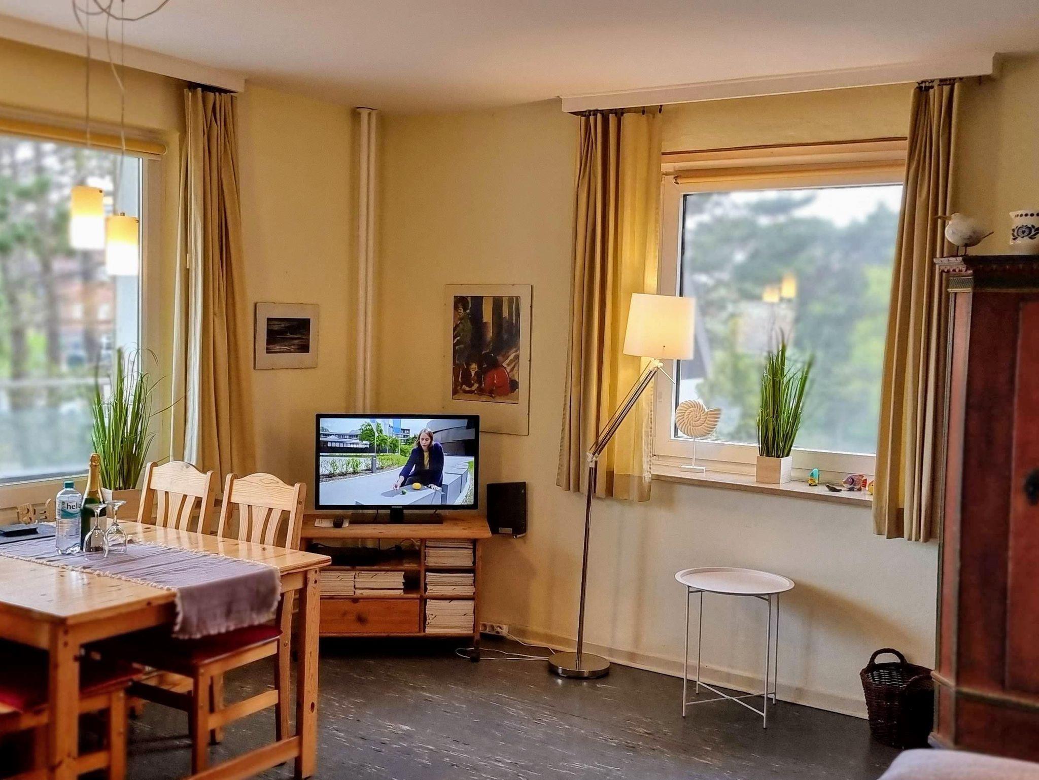 Die Ferienwohnung Dünenbake 14 ist sehr ruhig gelegen, angrenzend an dem Dünengürtel am Ende einer Sackgasse, aber dennoch zentral zu den Kureinrichtungen und zur Seebrücke gelegen. Die Wohnung ist zweckmäßig eingerichtet und ist für bis zu 4 Personen geeignet. Ca. 50 m ² große 2-Zimmer-Wohnung im 1. Stock. Wohnraum mit Zugang zum Balkon und einer Schlafcouch für 2 Personen, Esstisch mit Stühlen, Schlafzimmer mit Doppelbett 1,80x2,00 m, Kleiderschrank, Küche mit Mikrowelle (mit Grill), Kühlschrank mit Gefrierfach, Badezimmer mit Dusche,WC, Münz-Waschmaschine u. Trockner im Haus, Fahrstuhl vorhanden, Fahrradabstellplatz am Haus, keine Tiere, Nichtraucher