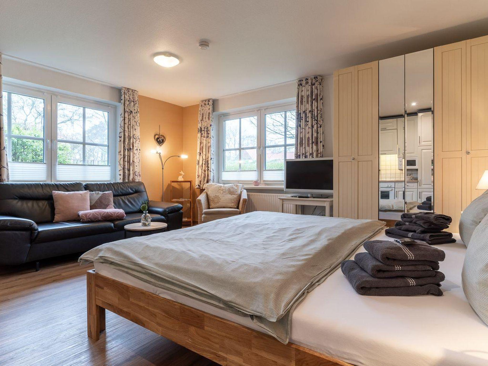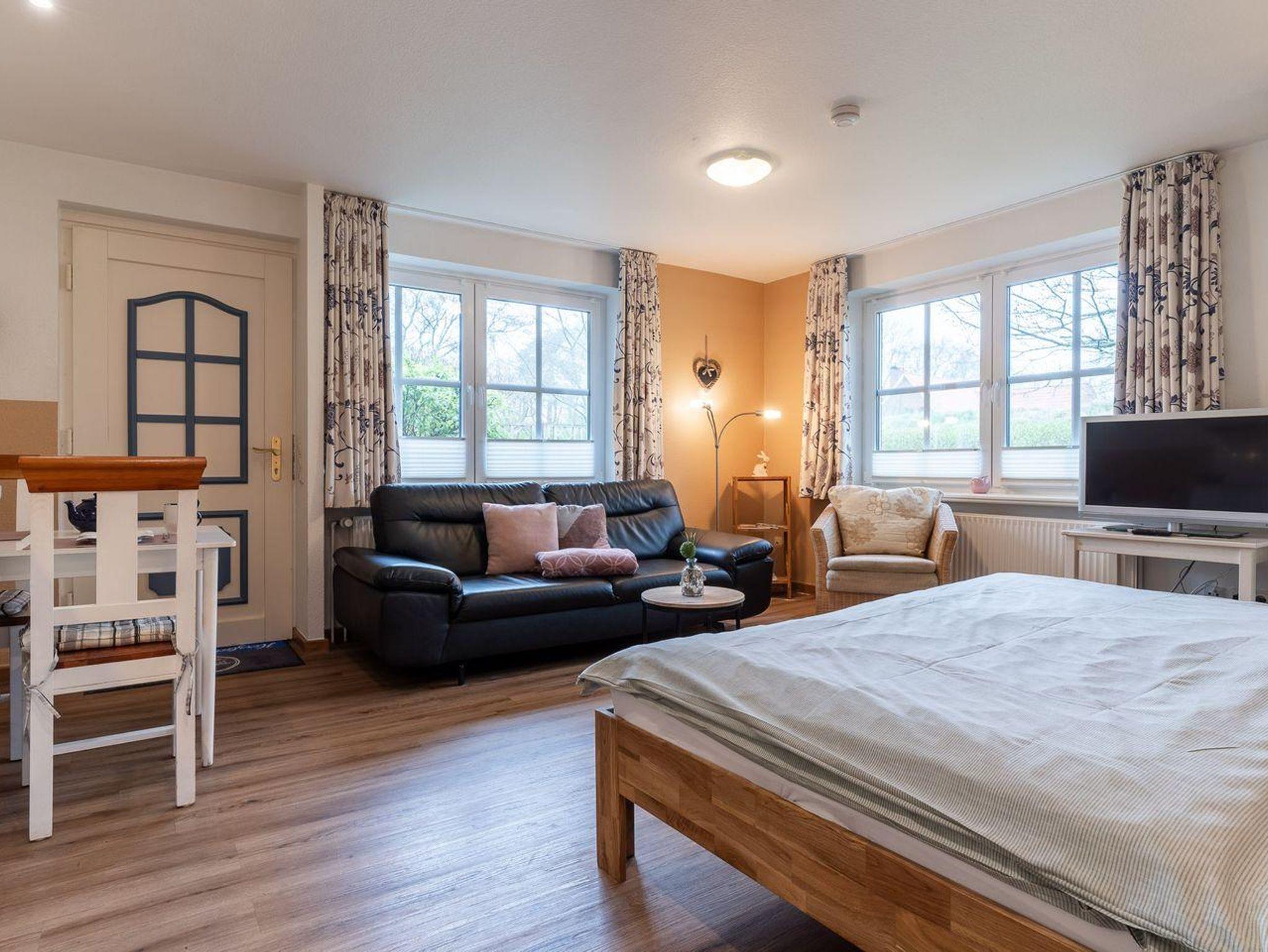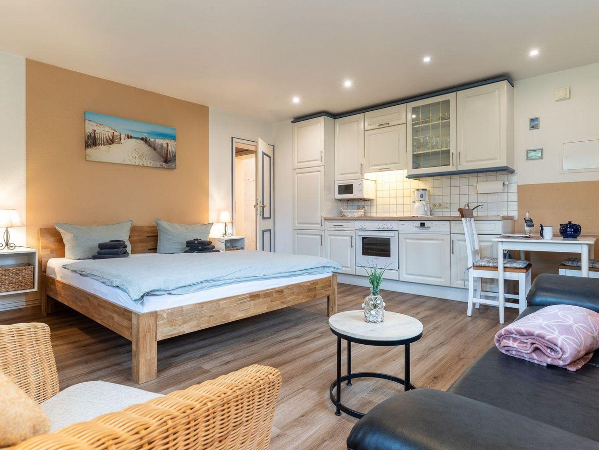 Unser Erdgeschoss-Apartment erstreckt sich über ca. 33 qm und verfügt über einen eigenen Eingang für Ihre Privatsphäre. Die vollausgestattete Küchenzeile ermöglicht es Ihnen, Ihre Lieblingsgerichte zu kochen, während das Ehebett ohne Fußteil auch für über 2 m große Gäste genügend Platz bietet. Ein Essplatz sowie eine große, gemütliche Couch mit Sessel laden zum Verweilen ein. Für Unterhaltung sorgen ein HD-Fernseher und ein Digital Stereo Radio mit MP3-CD Player und Bluetooth Funktion.