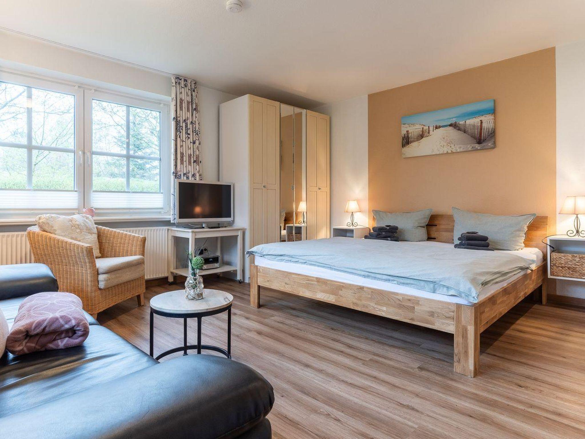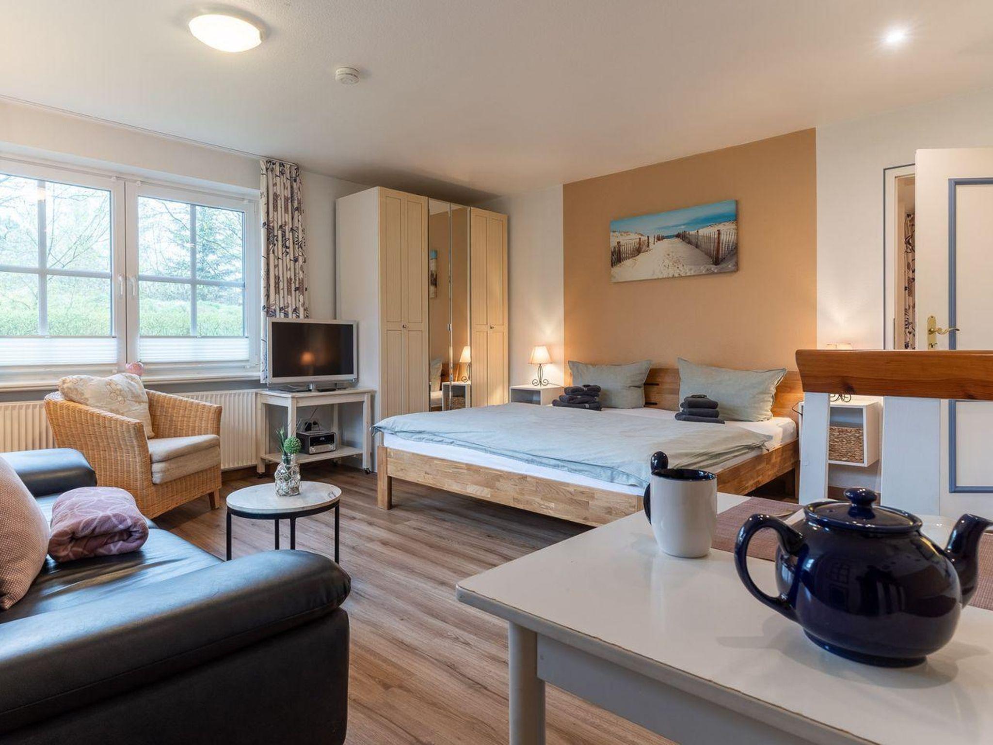 Der große Garten mit einem Strandkorb steht Ihnen ebenfalls zur Verfügung, falls Sie eine Alternative zu Ihrer Terrasse suchen.
