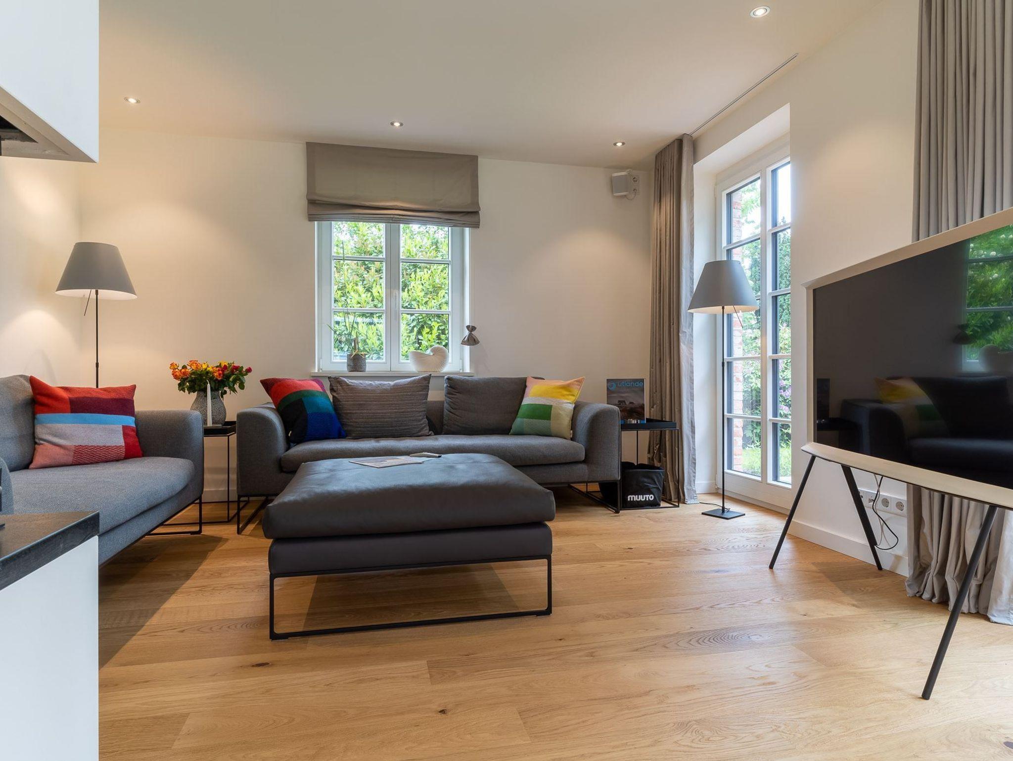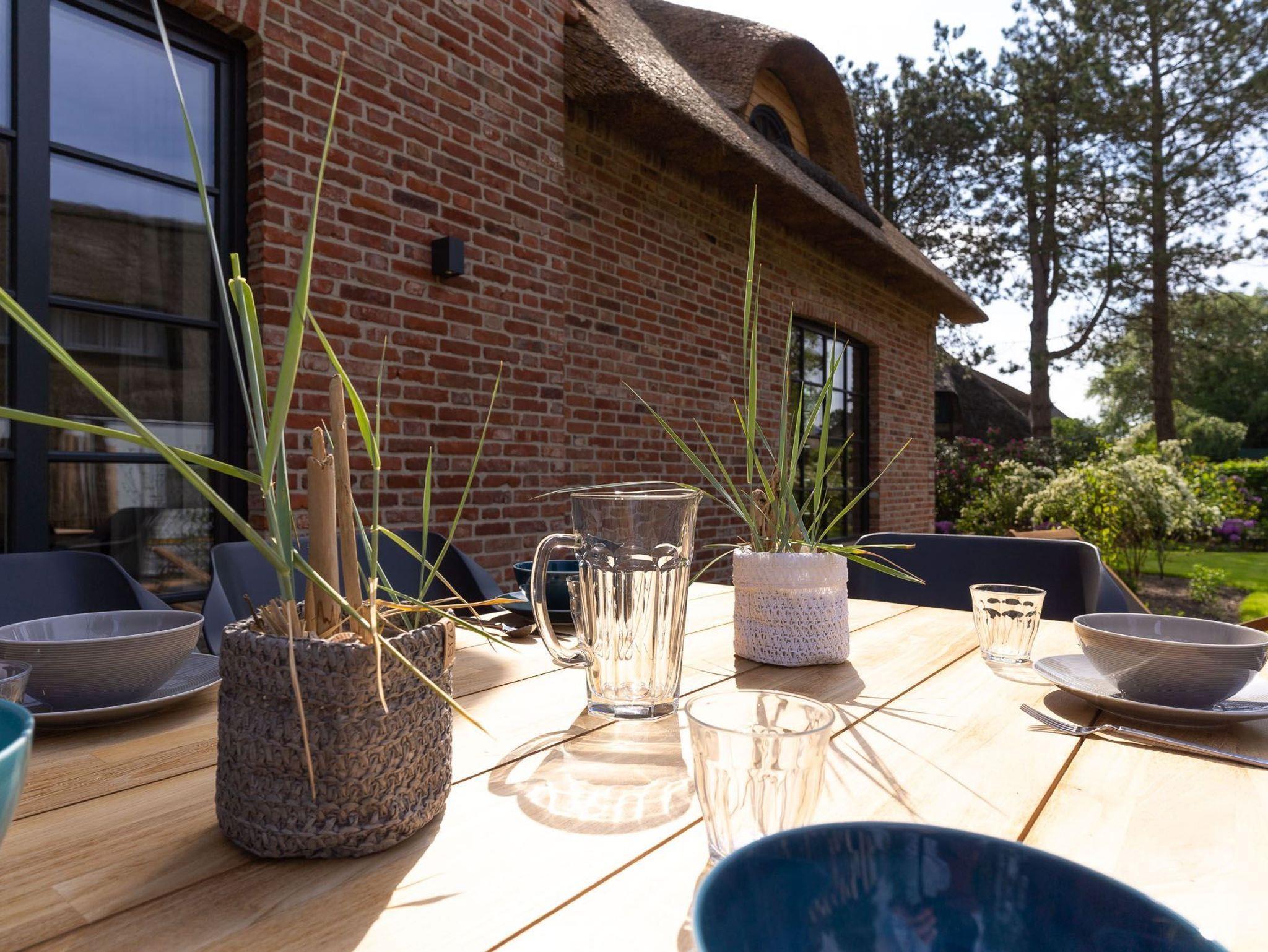 Exklusives, mit 5 DTV-Sternen ausgezeichnetes Prestigeobjekt - genießen Sie auf ca. 200 qm unvergleichlichen Luxus der Extraklasse. Das Reetdachhaus bietet mit 5 Zimmern auf 2 Ebenen, 2 Terrassen und Garten, Urlaubsräume für bis zu 8 Personen. Ein Juwel mitten im Stillen Dorf, eine von St. Peter-Ording´s Topadressen, qualitativ hochwertig und luxuriös ausgestattet, lädt das großzügige ?Hideaway Hoher Himmel?, der Name leitet sich aus dem sensationellen Eingangsbereich ab, zum Wohlfühlen ein, ob am offenen, von drei Seiten sichtbaren Kamin im Wohnzimmer, beim Entspannen im Spa, beim geselligen Beisammensein in dem 60 qm großen Wohn-Essbereich oder beim Kochen in der modernen, top ausgestatteten Küche. Umgeben von Musik über das Sonos Soundsystem, Streamingdienste, Smart TV, Fußbodenheizung erleben Sie einen unvergesslichen Urlaub. Im Außenbereich runden 2 große Terrassen und der liebevoll angelegte Garten den Zauber dieses Ferientraumes ab.