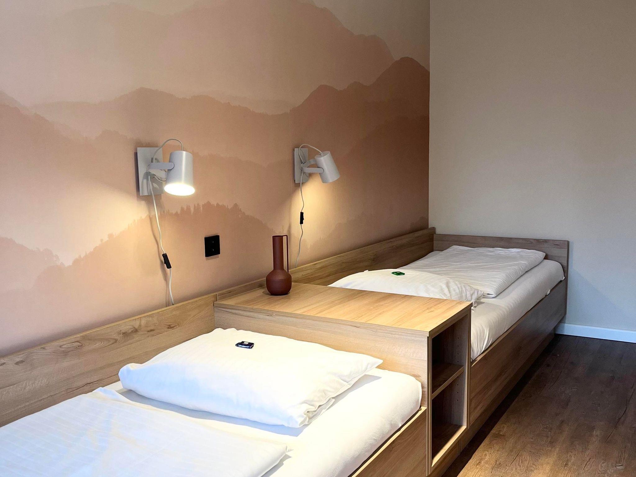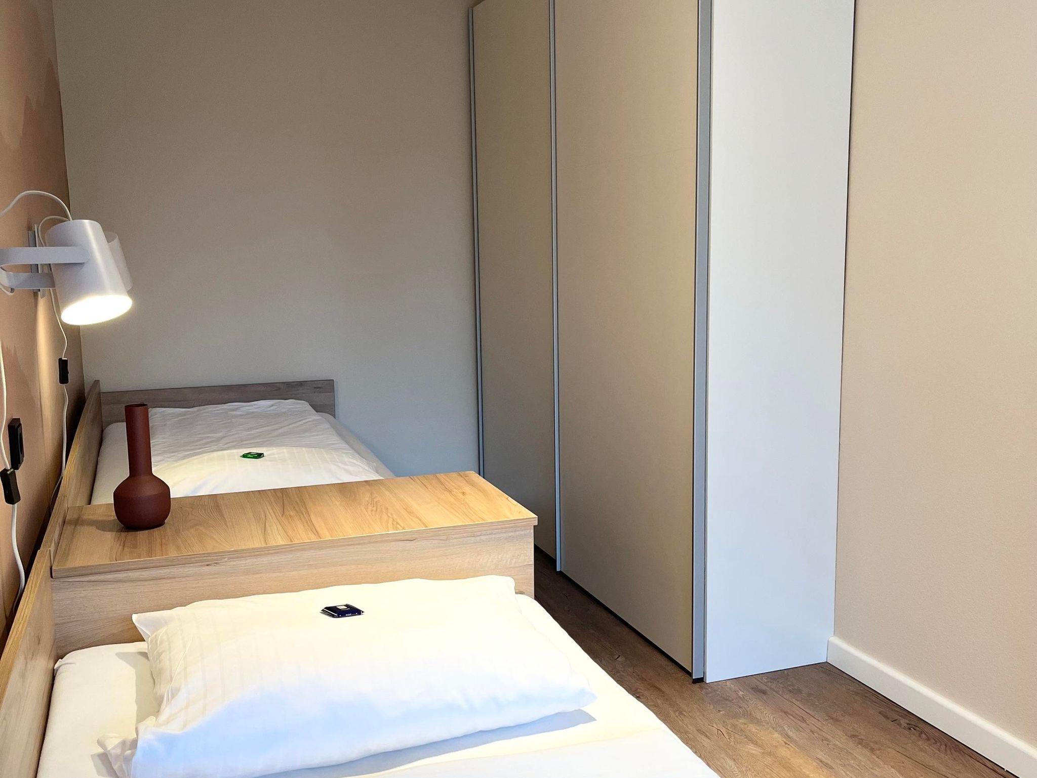 Wohnraum, Schlafraum mit 2 Einzelbetten, Laminat-Fußboden, Kabel-TV,