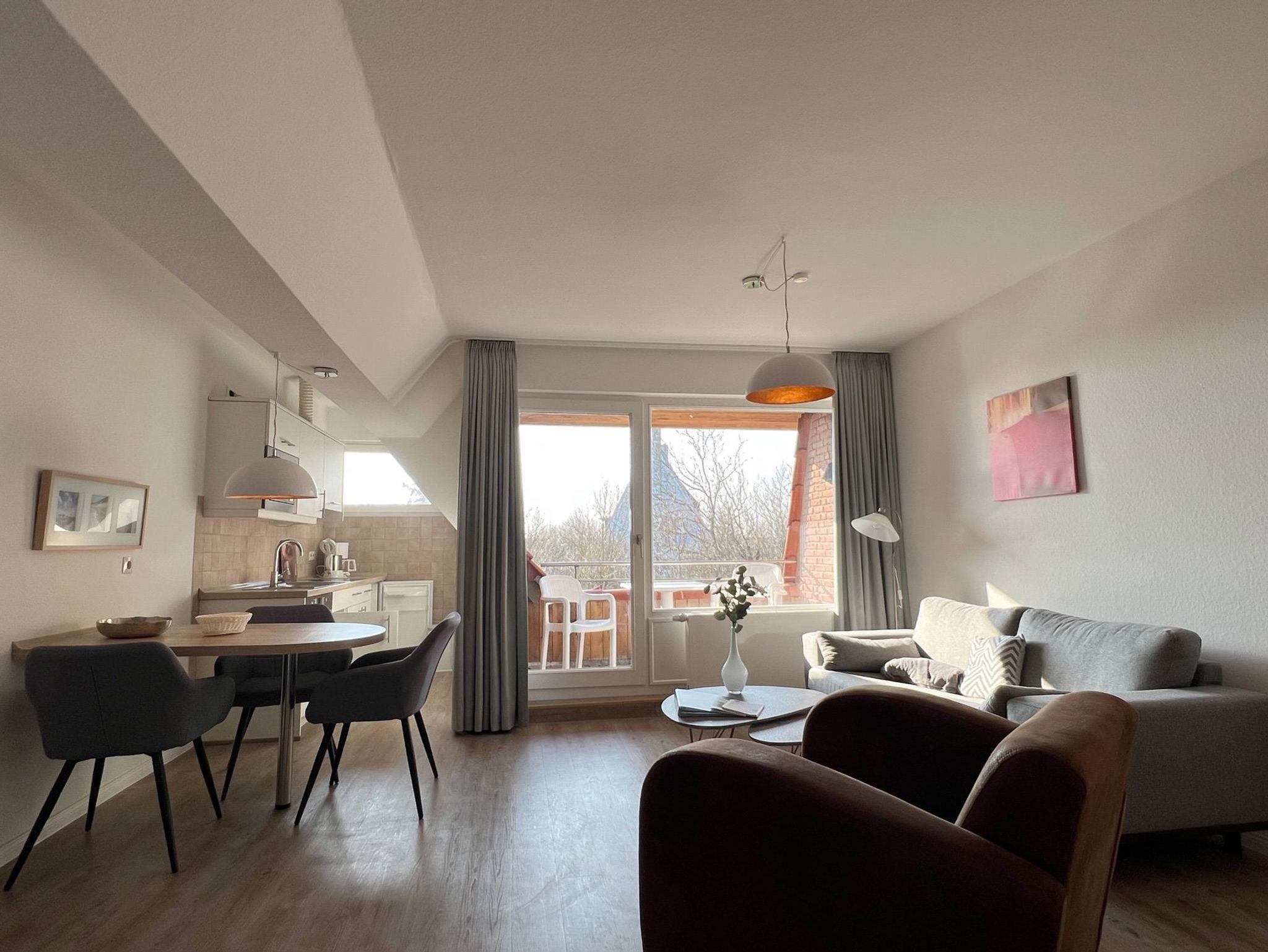 Schönes 2-3 Personen Ferienappartement in St. Peter-Ording mit Loggia in Strandnähe mit Blick auf den Ordinger Deich