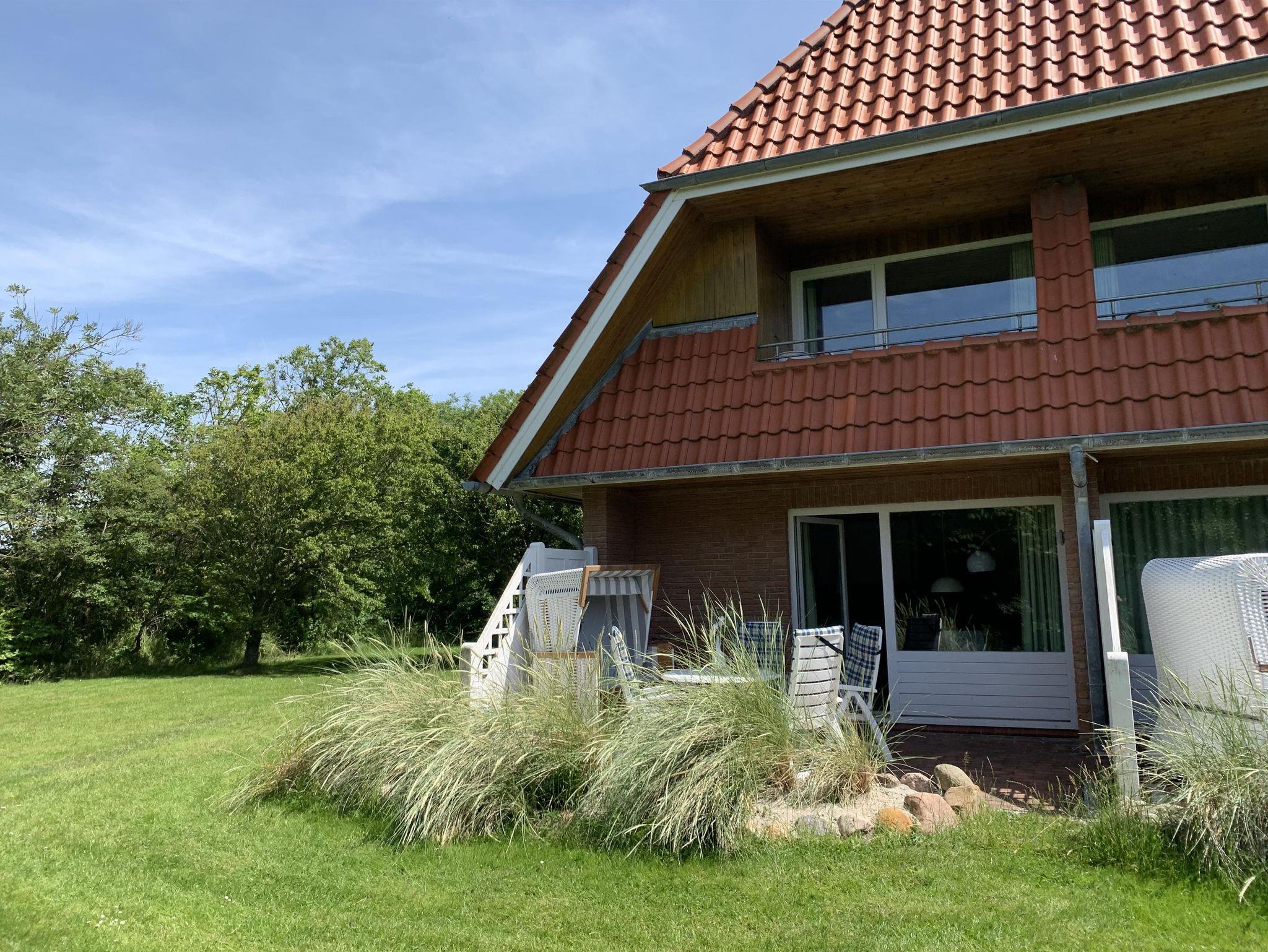 Das über 10.000 qm große Appartementhausgrundstück, eingerahmt von alten, landtypischen Bäumen ist parkähnlich mit Liegewiesen für unsere Gäste angelegt. Ein kurzer Weg, ca 100m, und Sie sind bereits im Dünengelände und am Strand.