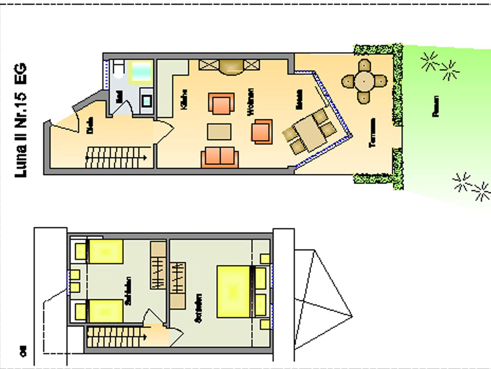 (1 Wohnzimmer, 2 Schlafzimmer, 1 Badezimmer)