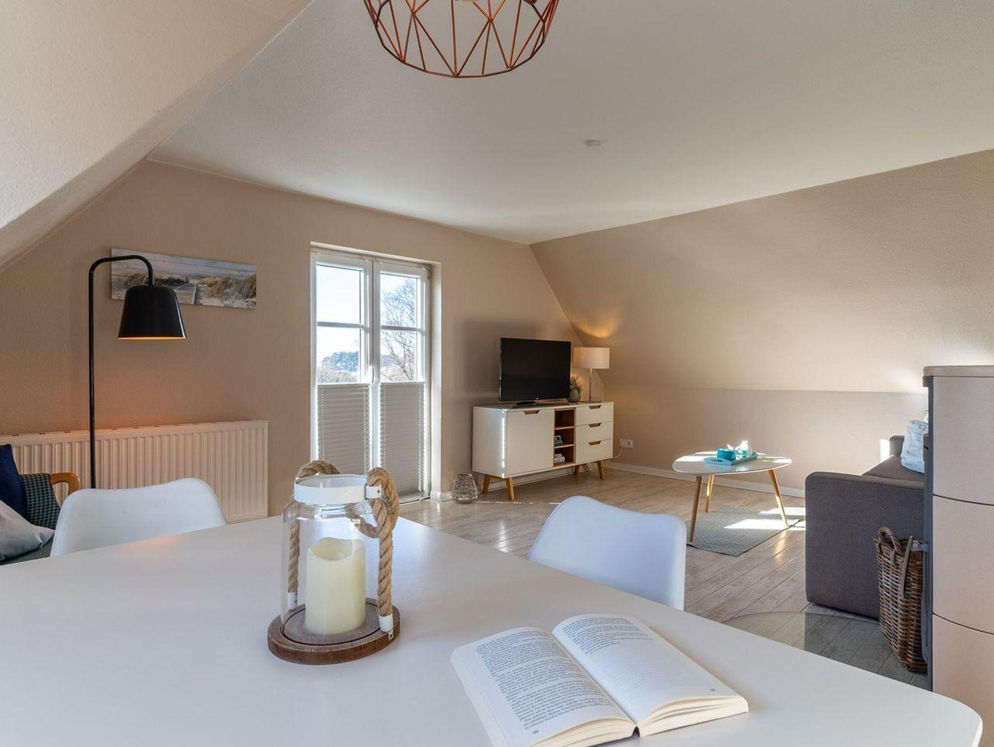 Sie gelangen durch Ihren Haupteingang direkt in den Eingangsbereich mit einer modernen Küche. Die Küche ist mit hochwertigen Geräten voll ausgestattet. Über eine schöne Holztreppe gelangen Sie in das Obergeschoss. Das großzügige Wohnzimmer mit Kamin sorgt für entspannte Urlaubstage. Hier befindet sich ein gemütliches Schlafsofa. Im Obergeschoss ist ebenso ein Doppelschlafzimmer mit großen Einbauschrank und ein Duschbad. Genießen Sie die schönste Zeit im Jahr - Ihren Urlaub, im gemütlichen Kleinod - direkt an den Dünen.