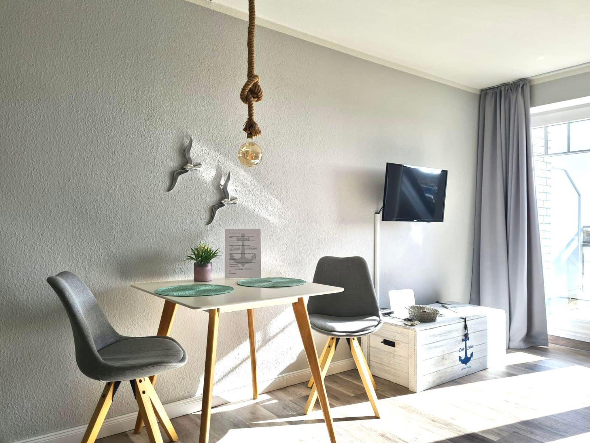 Die direkt am Böhler Strandzugang gelegene 2-Zimmer-Ferienwohnung für 2 Personen mit großem Balkon ist modern eingerichtet und heißt Sie zu allen Jahreszeiten willkommen. Das große Wohnzimmer im Beach Style mit integrierter Küche bietet Ihnen alles, was Sie für einen angenehmen und gemütlichen Urlaub benötigen: Sofa, Sessel, Esstisch, Flachbildfernseher, WLAN und eine gut ausgestattete Küche. Vom Balkon, der mit vom Wohnzimmer und mit Terassenmöbeln bestückt ist, haben Sie zudem direkten Blick über den Böhler Deich. Der Böhler Leuchtturm sowie der Strand sind nur einen kurzen Spaziergang entfernt. Im hell und freundlich eingerichteten Schlafzimmer mit großem Kleiderschrank lässt es sich ruhig und erholsam schlafen. Das Bad bietet Ihnen eine Dusche, Waschbecken, Föhn und Kosmetikspiegel. Bettwäsche und Handtücher sind im Preis bereits inklusive. Im Flur finden Sie außerdem noch eine Garderobe und Schuhablagen.