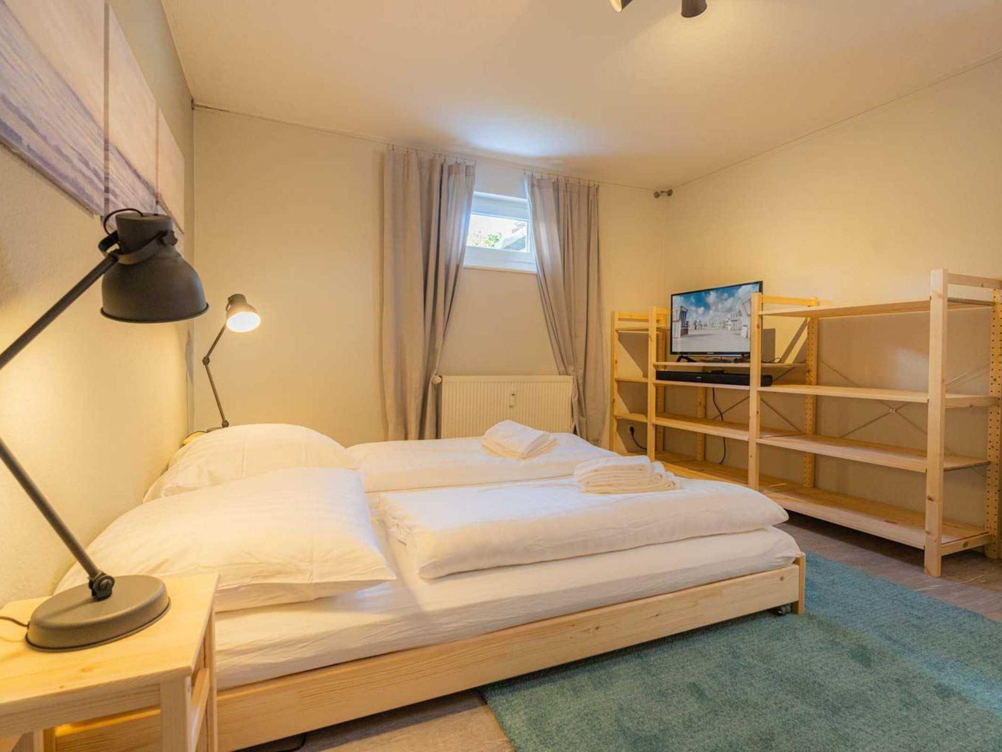 1. Schlafzimmer mit Doppelbett (2x 90x200cm), Kleiderschrank und SMART-TV (Kabel).