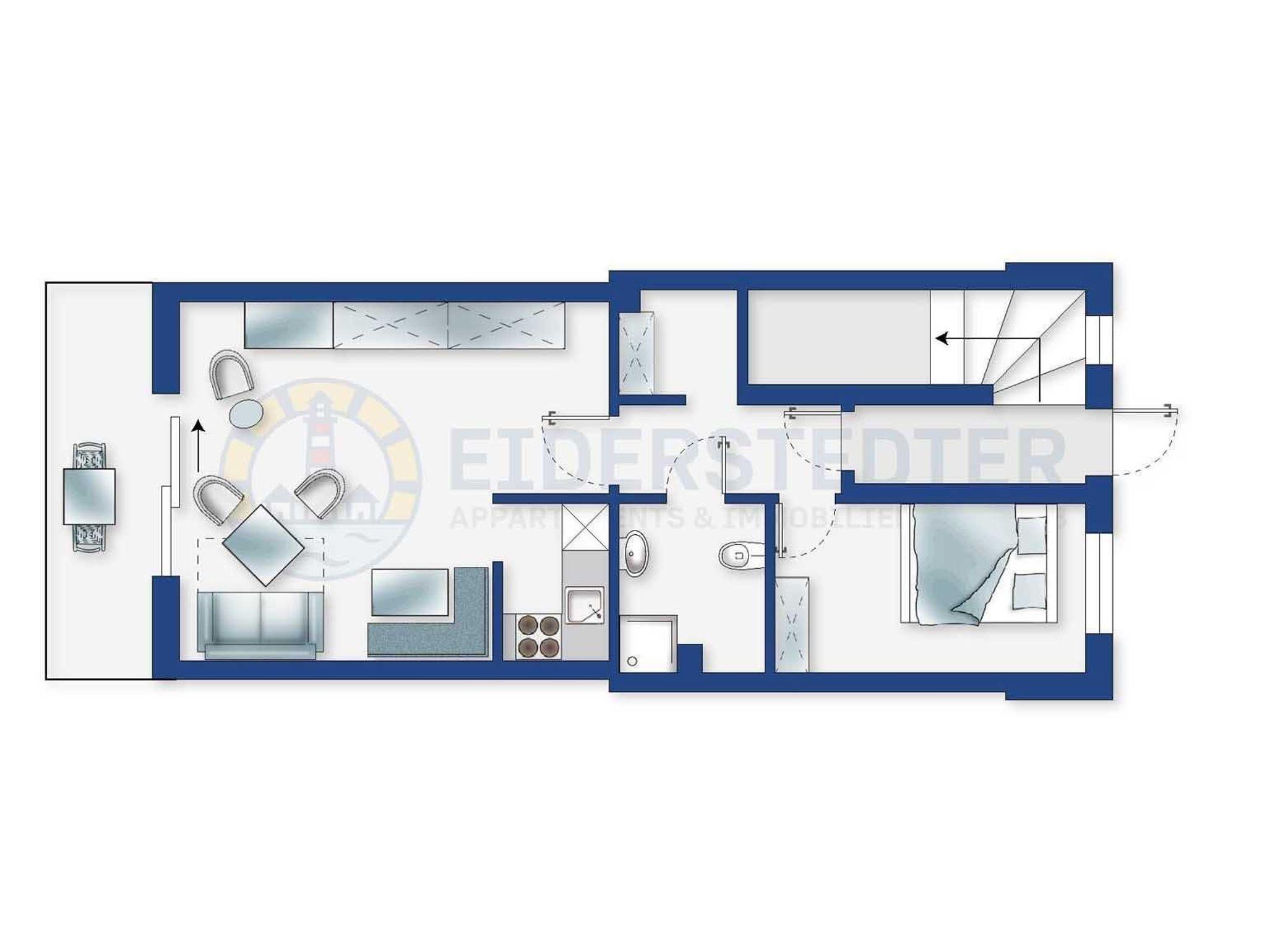 Gemütliche 2-Zimmer-Ferienwohnung Leuchtfeuer im Haus Nis Randers mit ca. 47 qm auf einer Ebene (EG) für bis zu 3 Personen (Wohlfühlbelegung: max. 2 Erwachsene). In ruhiger Lage in der Nähe des Nordseedeichs im Ortsteil Ording in St. Peter-Ording. Frische Backwaren gibt es gleich um die Ecke beim Bäcker. In direkter Umgebung befindet sich ein schöner, großer Waldspielplatz, Wander- und Nordic-Walking-Routen und Tennisplätze. Durch den nahegelegenen Kiefernwald oder auf dem befestigten Weg am Deich gelangen Sie zum Ortsteil Bad mit Dünen-Therme, Kureinrichtungen, Dünen-Hus und Kurpromenade sowie Seebrücke zur Badestelle Bad. Den Strand erreichen Sie in wenigen Minuten zu Fuß oder mit dem Fahrrad.