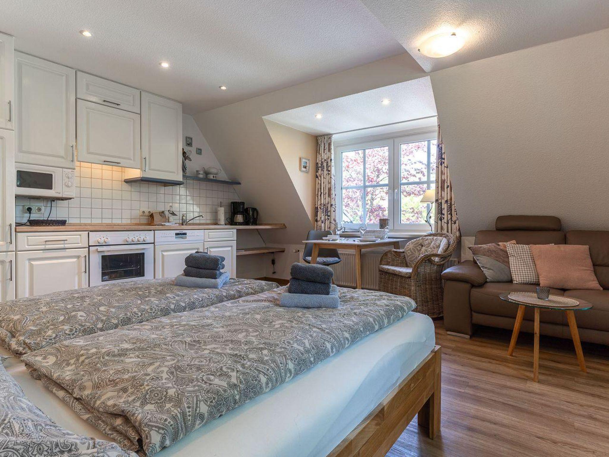 Willkommen in unserem gemütlichen 1-Raum-Kuschel-Apartment – ein perfektes Refugium für Ihren wohlverdienten Urlaub! Mit seinem eigenen Eingang bietet diese ca. 29 qm große Oase Ihnen eine komfortable und entspannte Atmosphäre.