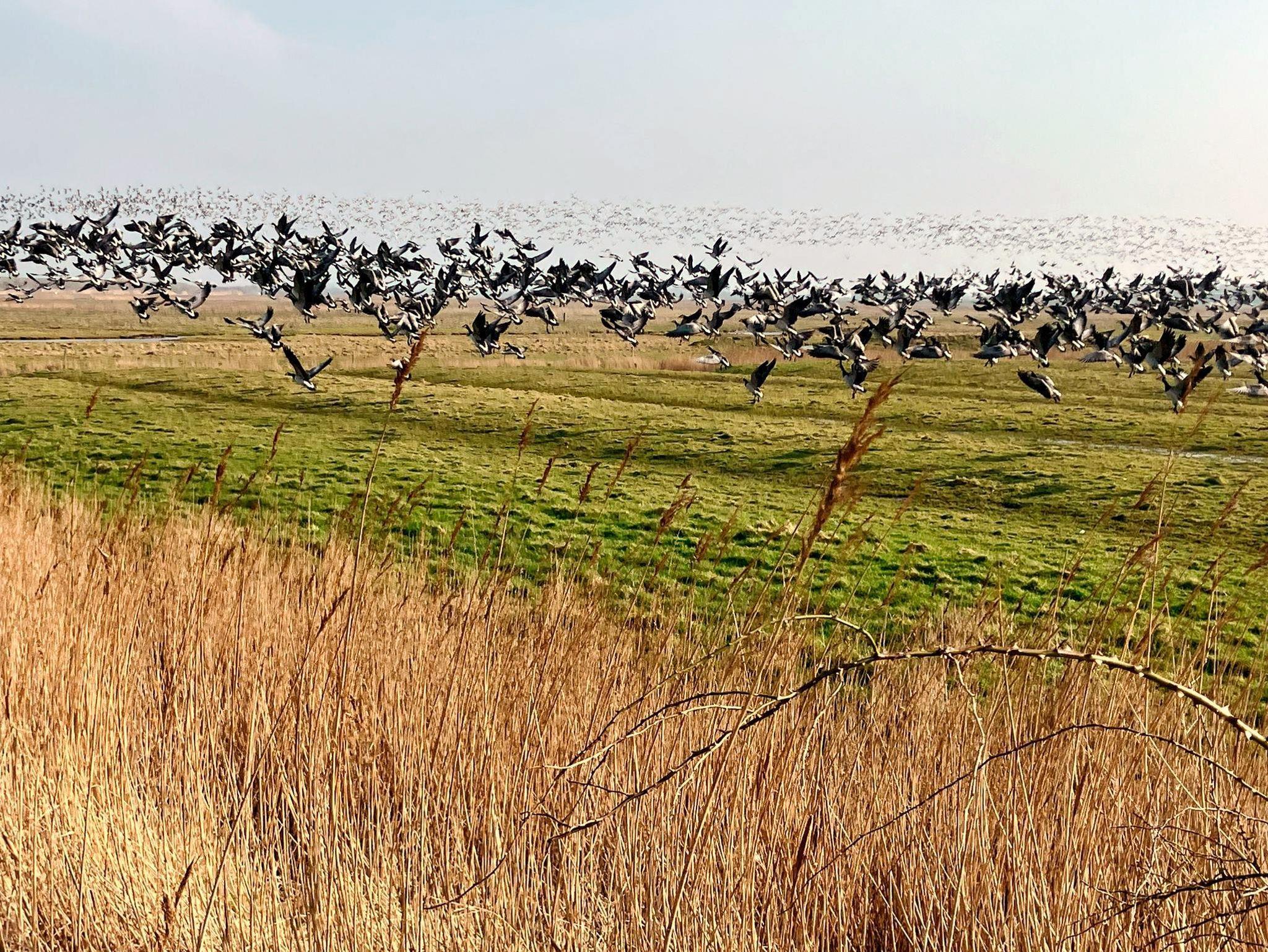 Der großzügige Wohnraum öffnet sich nach Süden und Osten mit bodentiefen Fenster- und Türelementen zu einer weiträumigen Holzterrasse und schafft so einen fließenden Übergang zwischen Innen und Außen, zur Weite der Wiesenlandschaft Eiderstedts. Das norderdiekhuus mit der großen, sehr gut ausgestattete Küche, mit dem breiten Sofa am Fenster mit Weitblick sowie den drei sehr gemütlichen Schlafzimmer im Obergeschoss, eins davon mit Bad en suite, bietet Platz für bis zu sechs Gäste. Die Ferienwohnung ist komplett mit Fussbodenheizung ausgestattet.