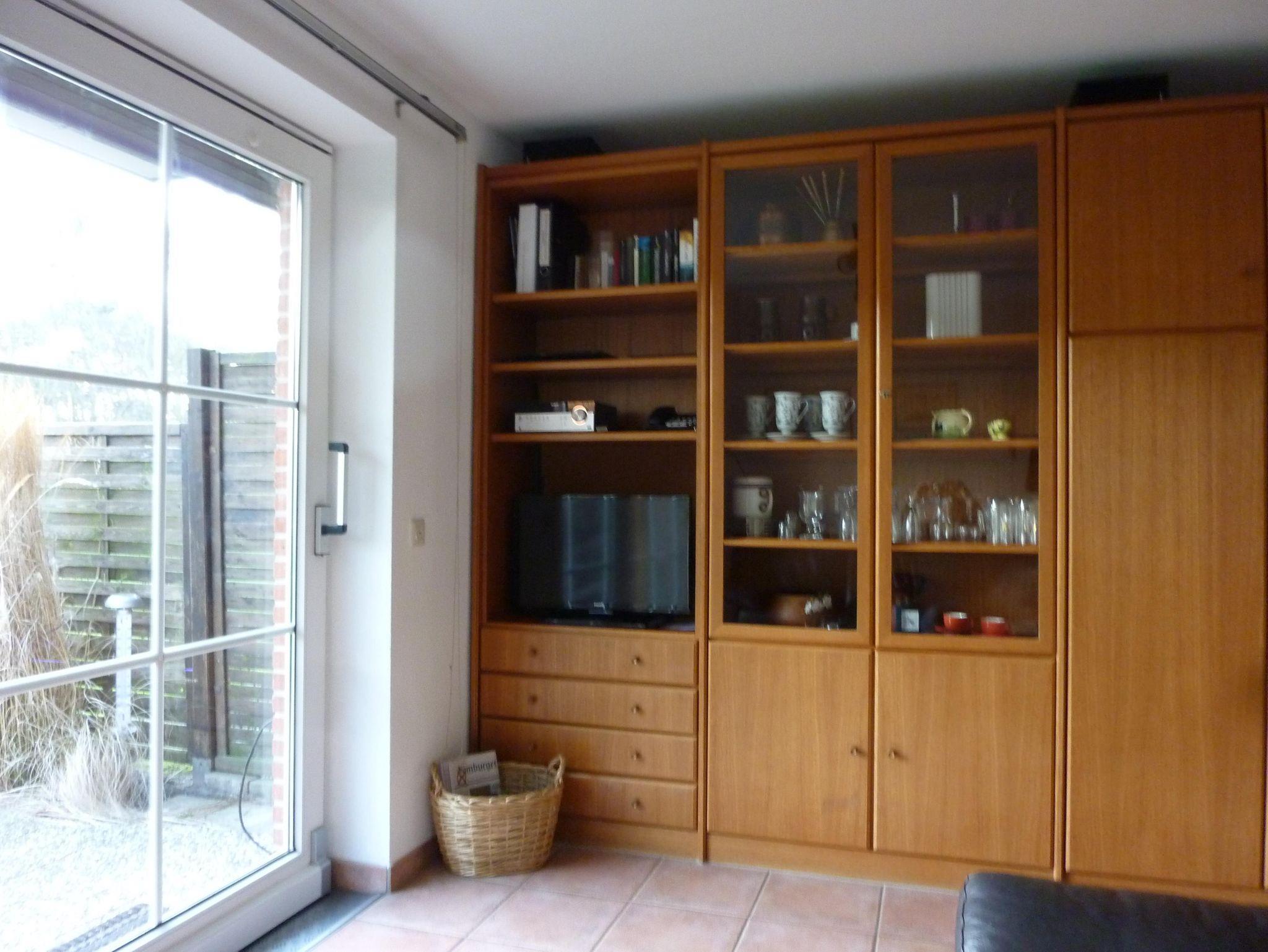 Wohnraum/Schlafraum: Schrankwand mit Schrankdoppelbett (1,40x2,00 m), Lederecksofa, Stereoanlage, Farb-TV m. Empfang der digitalen Sender u. 1 USB Anschluss. Küchenzeile mit Geschirrspüler, Mikrowelle, Herd mit Backofen, Toaster, Kaffeemaschine, Kaffeepadmaschine u. Kaffeekapselmaschine(Tchibo). Esstisch mit 4 Stühlen. Boden gefliest!