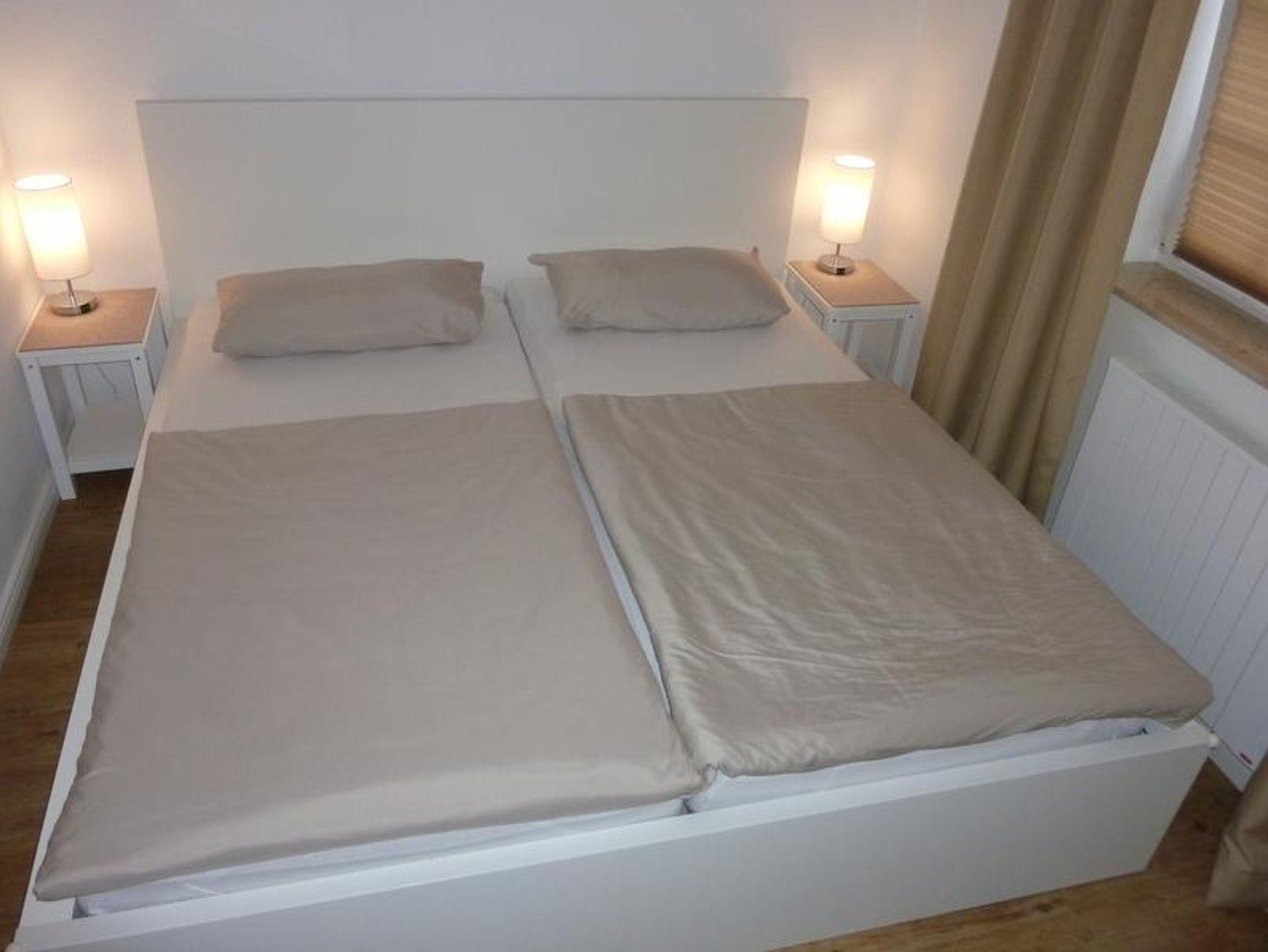 Schlafraum: Doppelbett mit sehr guten Matratzen und verstellbaren Lattenrosten. Sideboard mit 4 Schubladen. Kleiderstange. Nachtischlampen mit Touchfunktion und USB Anschluss. Bodenbelag: Designer Bohlen