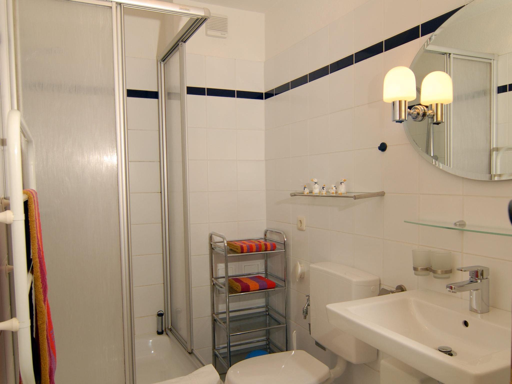 BadDusche, Waschbecken, WC, Rollwagen, Schuhständer, Duschkabine