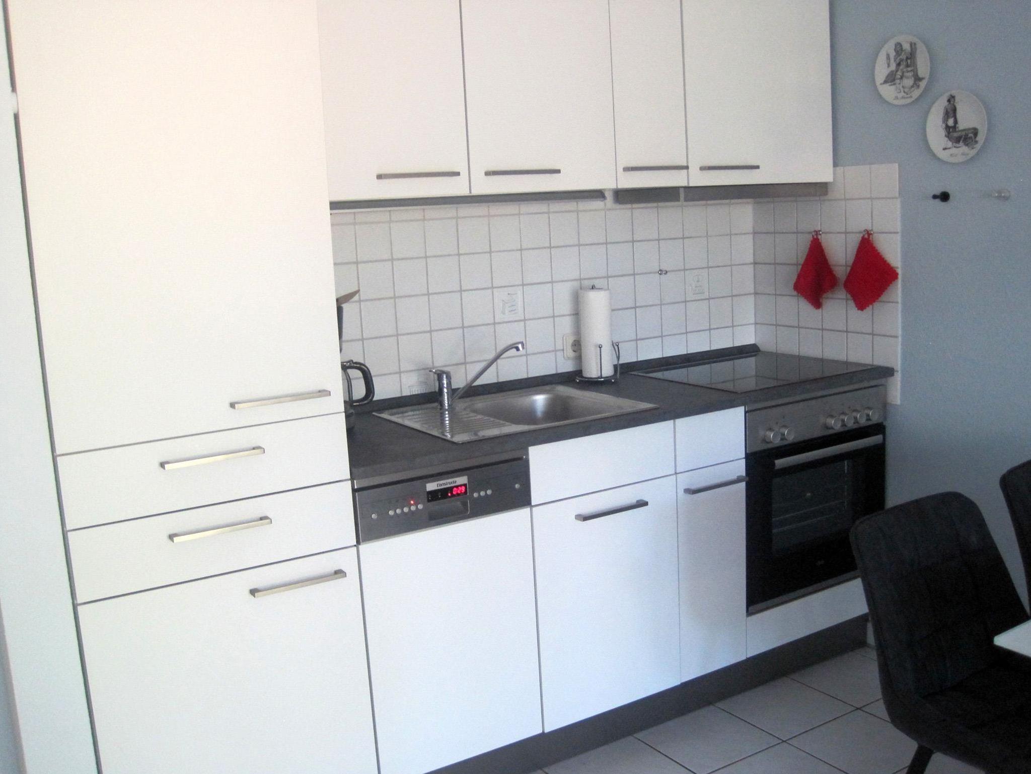 WohnzimmerEckschlafcouch, Couchtisch, Sessel, Hocker, Stehlampe, Anrichte, Flachbildschirm, DVD-Player, Sat-TV, Telefon, Schrank, Stereoanlage mit CD-Player, Esstisch, 4 Stühle, Küchenzeile, 4 Plattenherd mit Backofen, Dunstabzugshaube, Kühlschrank, Spülmaschine, Mikrowelle, Kaffeemaschine, Wasserkocher, Eierkocher, Bügeleisen, Toaster, Geschirr, Kochtöpfe