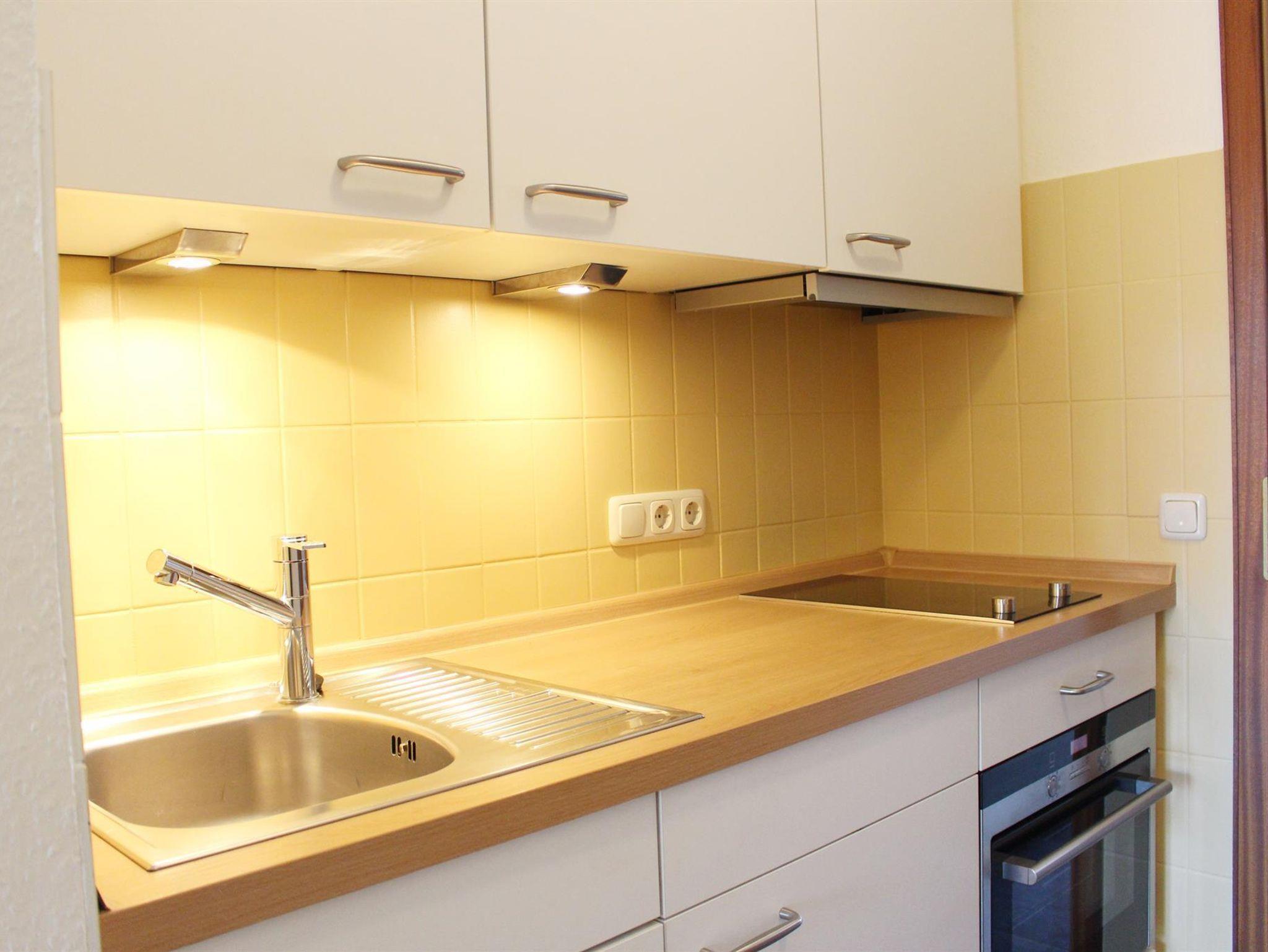 Vollständig ausgestattete Küche (u.a. mit Ceran-Kochfeld, Backofen usw.), Dusche/WC, Flur sowie ien großer möblierter Balkon. Zur Wohnung gehört der Pkw-Stellplatz Nr. 77 in der Tiefgarage. Waschmaschine und Trockner im Haupthaus vorhanden. Unterstellmöglichkeit für Fahrräder. Hunde nach Absprache erlaubt!