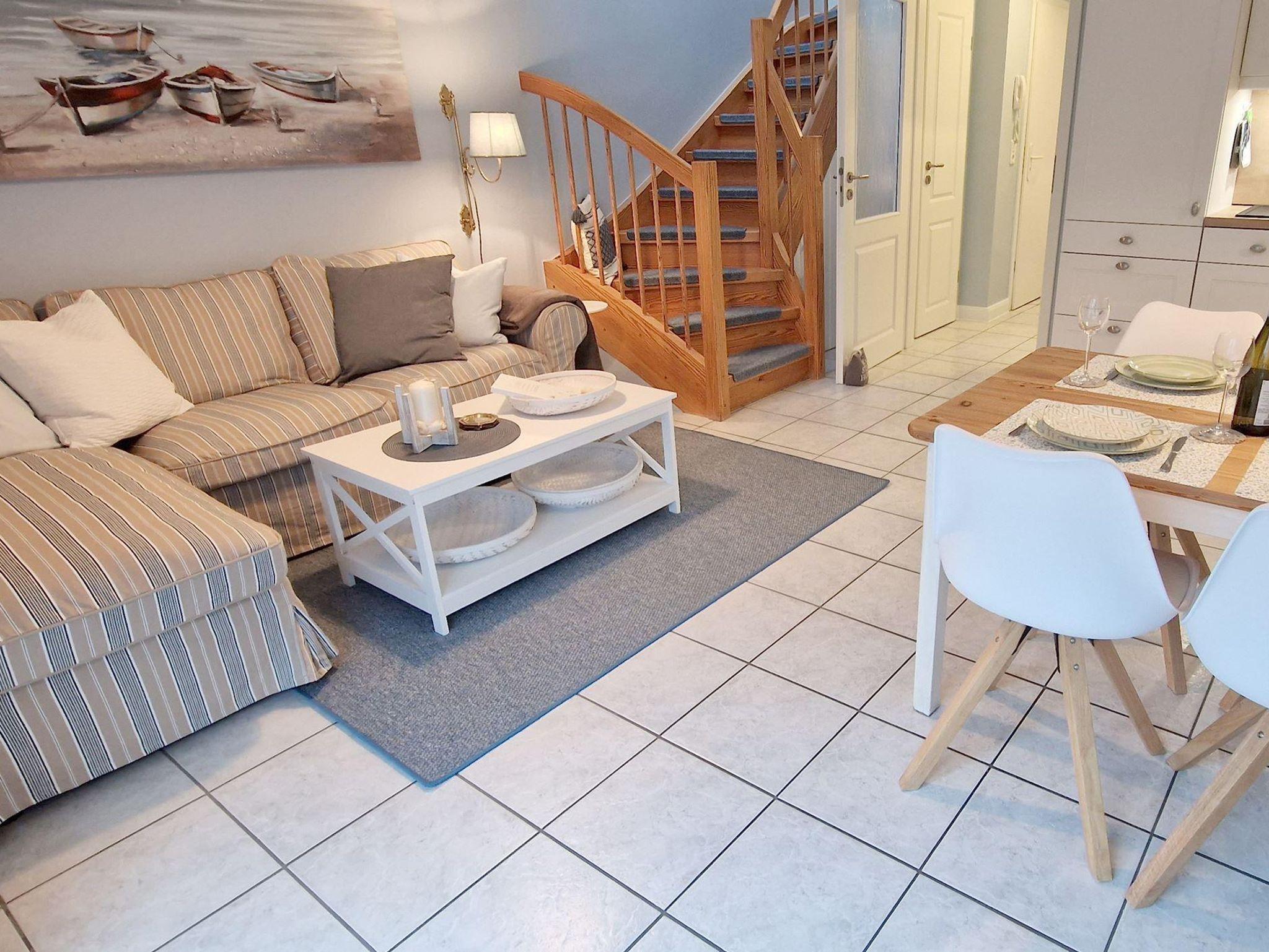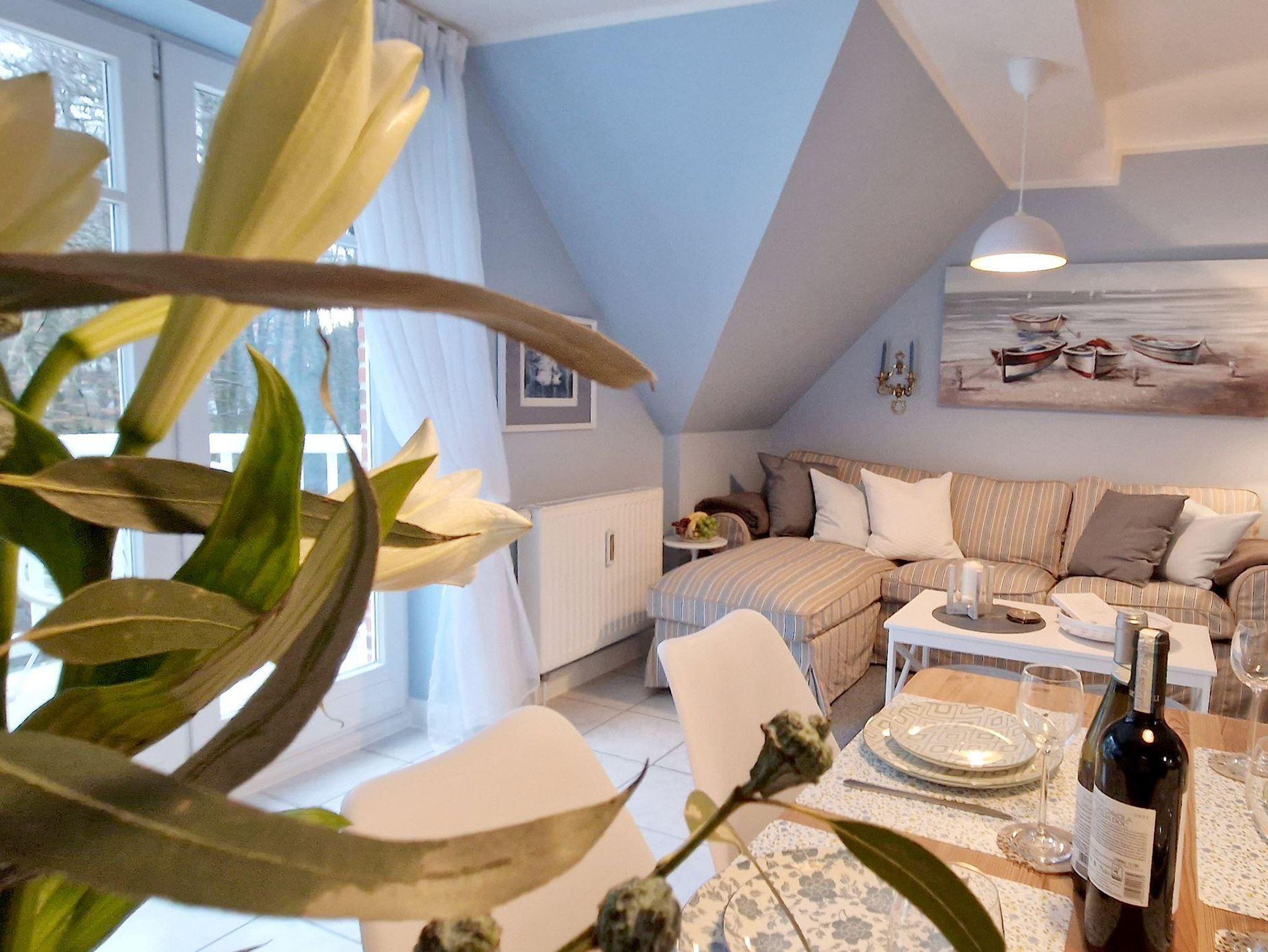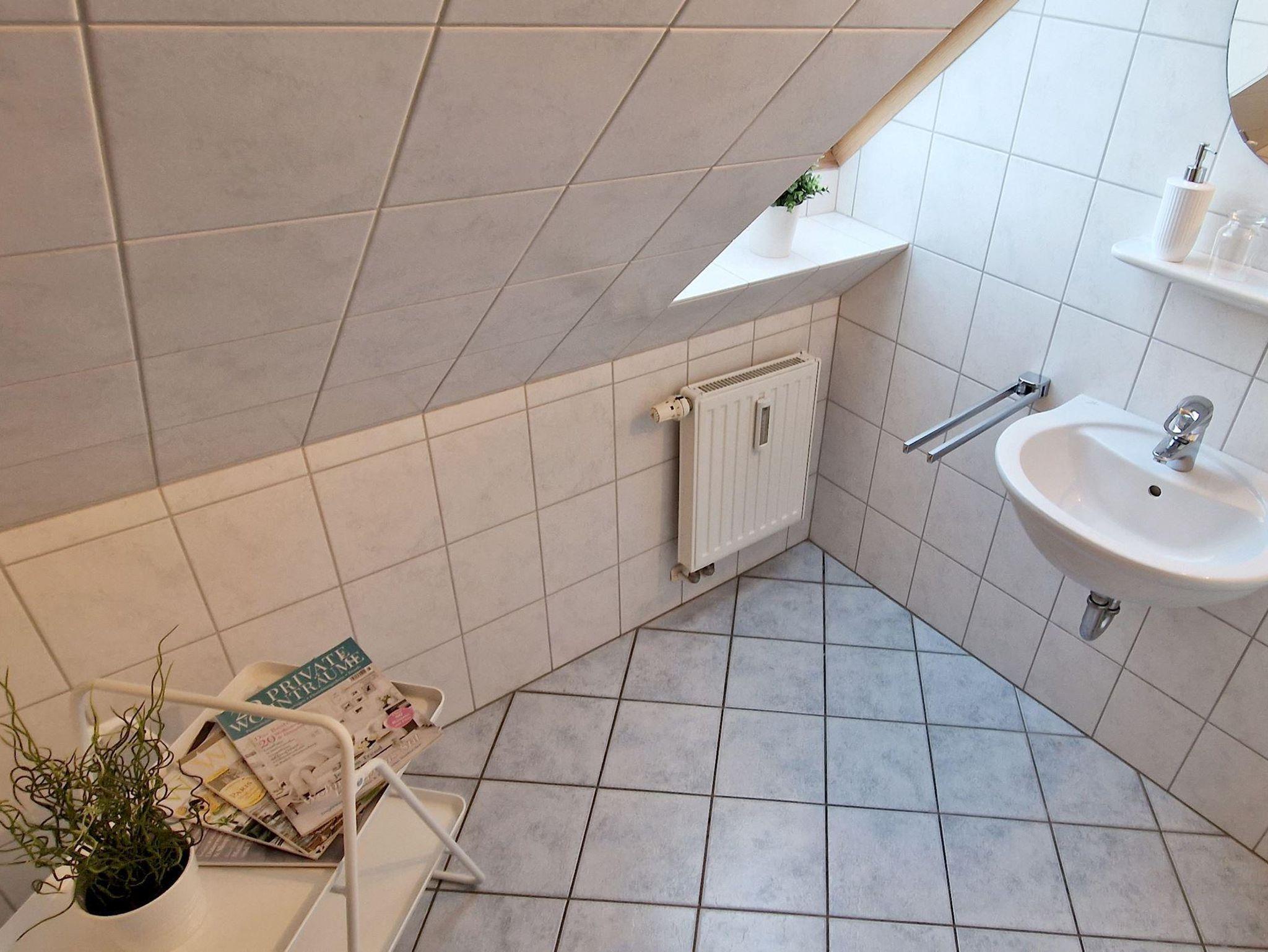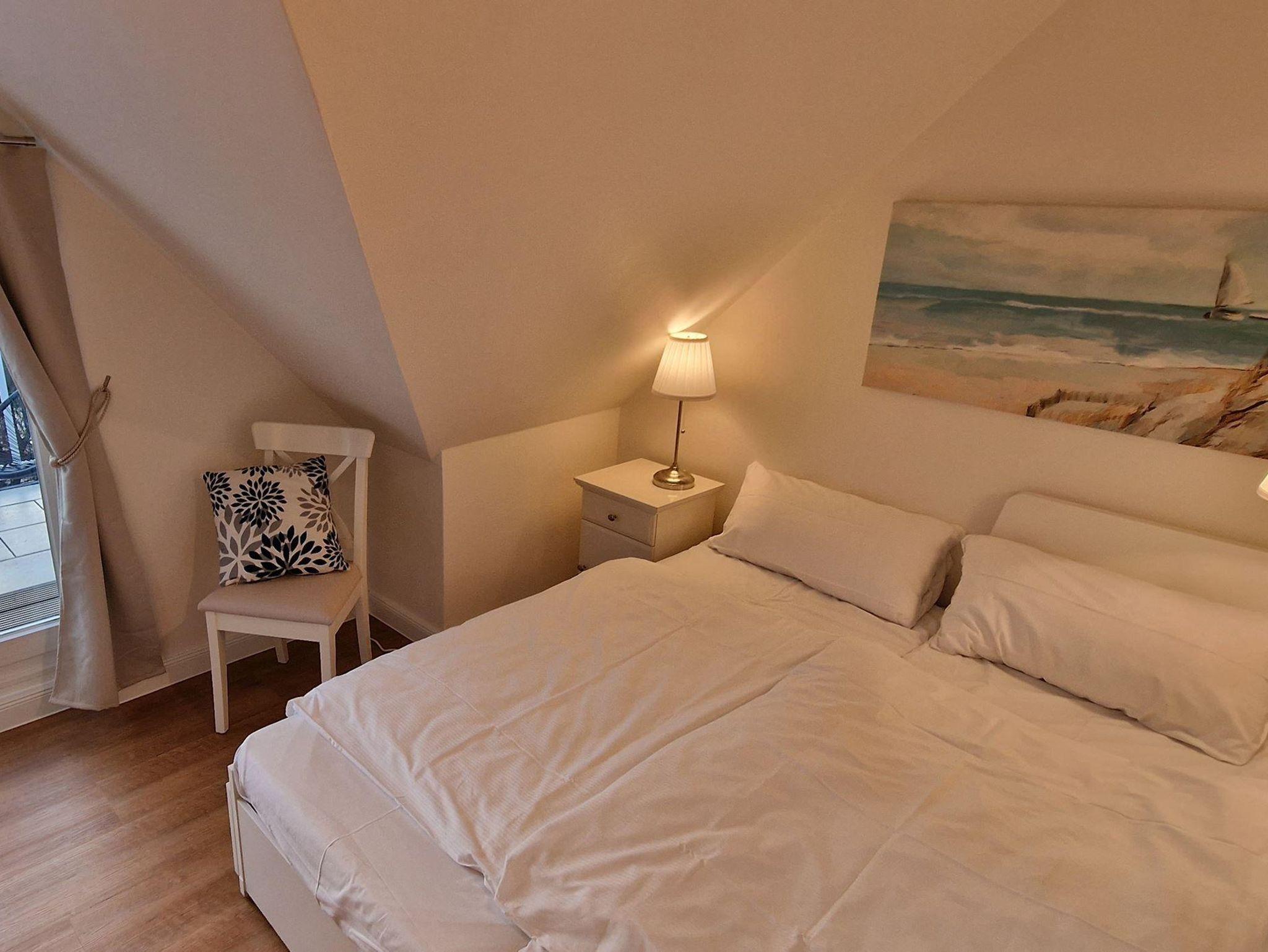 Diese moderne, neu eingerichtete 3-Zimmer Ferienwohnung ist für 4 Personen über 2 Etagen. Die Ferienwohnung in St. Peter-Bad ist liebevoll und gemütlich eingerichtet. Die maritim eingerichtete Ferienwohnung verfügt über einen modernen Wohn-/Essbereich mit zwei nach Süd-West ausgerichteten Balkonen. Der Ausblick auf das gegenüberliegende Waldgrundstück bietet trotz der zentralen Lage im Herzen des Ortsteils „Bad“ absolute Ruhe und Privatsphäre. Die neue, voll ausgestattete Küchenzeile verfügt über ein Induktionskochfeld, eine Spülmaschine, Kühl-Gefrier-Kombination, Mikrowelle und einen Backofen. Im 1. OG ist ein Schlafzimmer mit Doppelbett, das Duschbad und der Wohn-Essbereich. Im DG steht ein Doppelbett, einschiebbar zu einem Bett, und ein Fernseher. Der Clou: Oben gibt es noch ein weiteres kleines Bad mit WC und einen zweiten großen Balkon. Genießen sie die Zeit auf den beiden sonnigen möblierten Balkonen in südwestlicher Ausrichtung. Auch technisch ist die Wohnung modern ausgestattet. WLAN ist selbstverständlich inklusive, beide Flachbildfernseher verfügen über HDMI- und USB- Schnittstellen, ein TV ist ein Smart-TV. Kinderreisebett und Hochstuhl sind kostenlos vorhanden. Rauchen und Haustiere sind nicht erlaubt. Ein Pkw-Stellplatz auf dem Grundstück Nr. 7 und ein überdachter Fahrradständer hinter dem Haus stehen zur Verfügung.