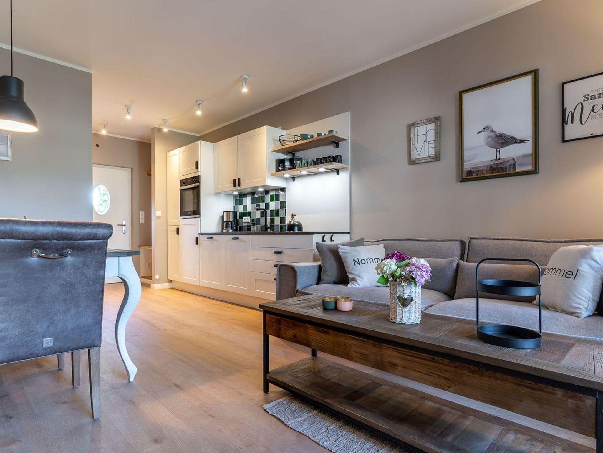 Der lichtdurchflutete Wohnraum mit einer offenen Wohnküche und einem gemütlichen Essbereich bietet jeden Komfort. Die Küche ist voll ausgestattet und verfügt über hochwertige Elektrogeräte.