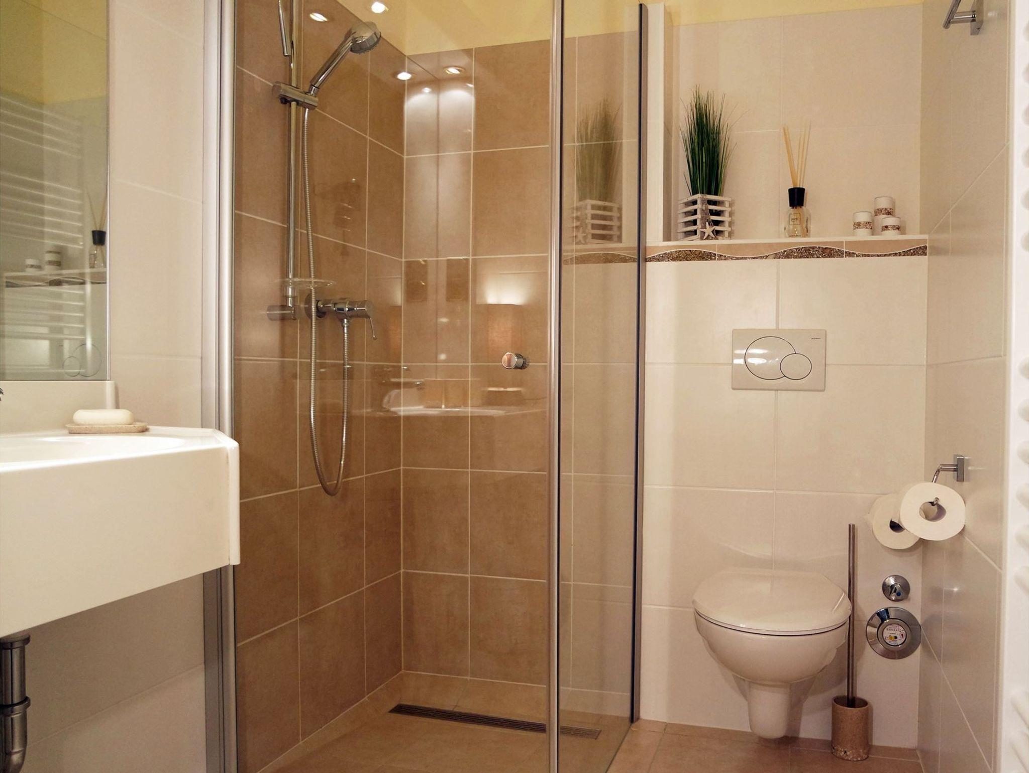 Modernes Badezimmer: Das Bad mit ebenerdiger Dusche und Handtuchheizkörper sorgt für zusätzlichen Komfort und ein angenehmes Wohlfühlambiente.
