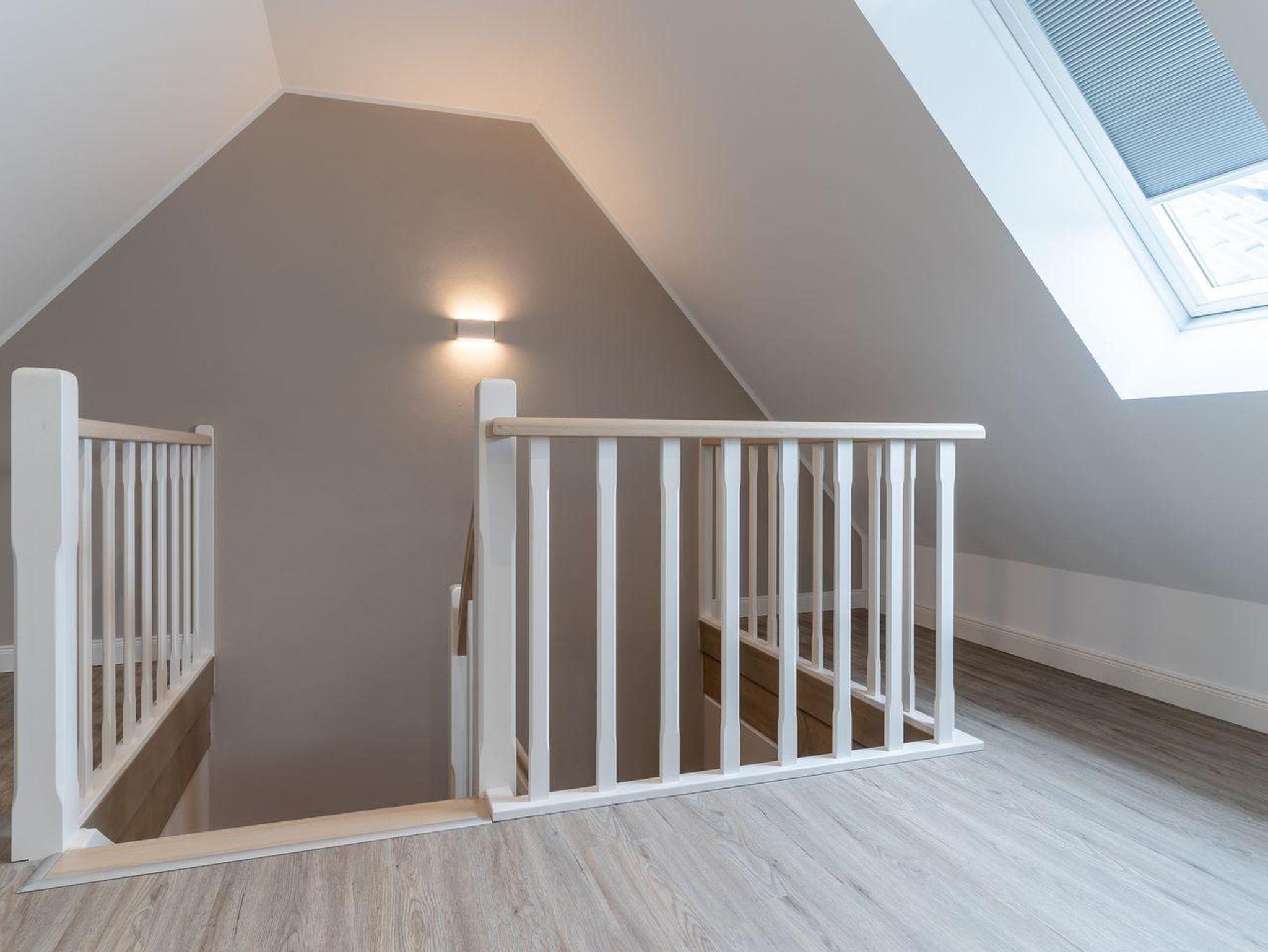 Im Eingangsbereich befinden sich Spiegel und Garderobe, zusätzlich befindet sich im Erdgeschoss noch ein Badezimmer mit Toilette und bodengleicher Dusche.
