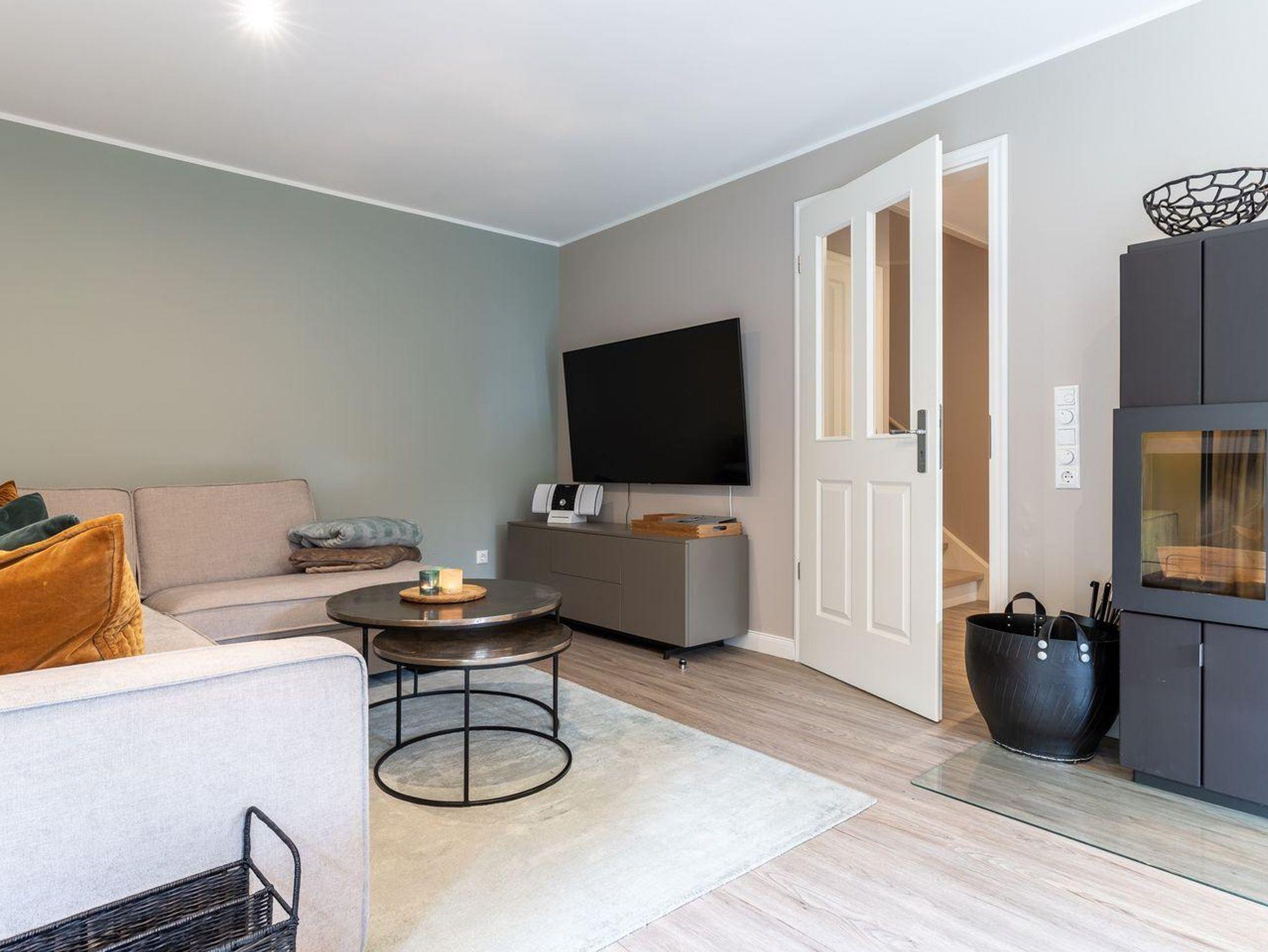 Im Erdgeschoss der Doppelhaushälfte Summerdiek 7 erwartet Sie das geräumige, komfortabel ausgestattete Wohnzimmer mit integrierter Küche.