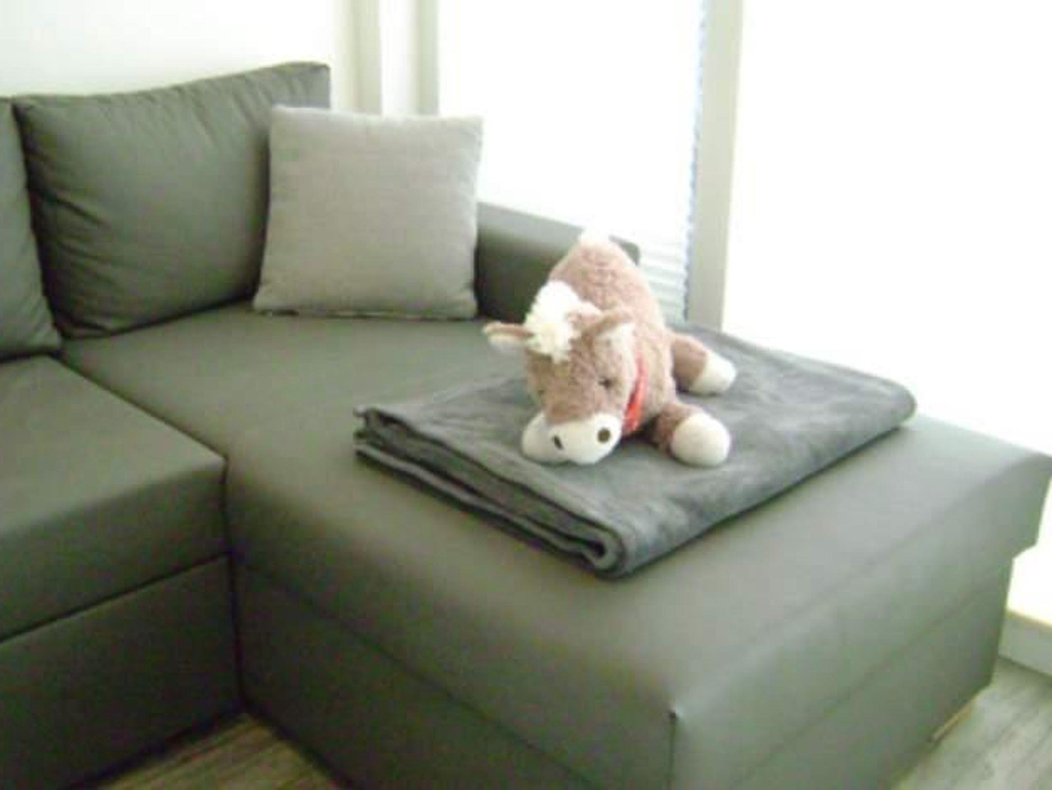 Im Wohnzimmer steht zudem ein gemütliches ausklappbares Ecksofa zur Verfügung, das bei Bedarf zusätzliche Schlafmöglichkeiten bietet.
