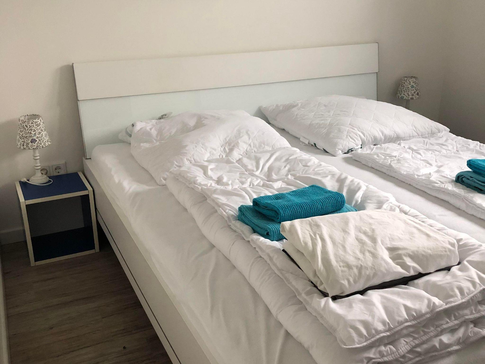 Die Ferienwohnung liegt in einem im Jahre 2014 errichteten Appartementhaus und ist geschmackvoll eingerichtet. Über den Flur, der mit Garderobenmöbeln ausgestattet ist, erreichen Sie Wohn-/Esszimmer, Schlafzimmer, Duschbad und Abstellraum. Das Wohn-/Esszimmer ist mit einer komplett ausgestatteten, modernen Küchenzeile versehen, an die eine Essecke angegliedert ist. Die gemütliche Sitzecke ist behaglich ausgestattet mit großem Flachbildschirm, DVD-/Blu-Ray-Player, bluetooth-fähiger Stereoanlage, Gesellschaftsspielen und Lesematerial. Aus dem Wohnzimmer haben Sie direkten Zugang zur möblierten Terrasse mit großzügigem Strandkorb (2,5-Sitzer), Gartenmöbeln und Grill. Das Schlafzimmer ist geräumig und besteht aus einem Doppelbett mit offenem Fußende, Nachttischen, großzügigem Kleiderschrank und einem Herrendiener zur Ablage von Kleidungsstücken. Im Badezimmer finden Sie neben Dusche, WC und verschiedenen Badmöbeln einen Fön und Badutensilien. Bügeleisen und Bügelbrett befinden sich im Abstellraum. Für Kleinkinder ist ein Kinderreisebett und Hochstuhl kostenfrei verfügbar, welches für Sie im Keller bereit steht.