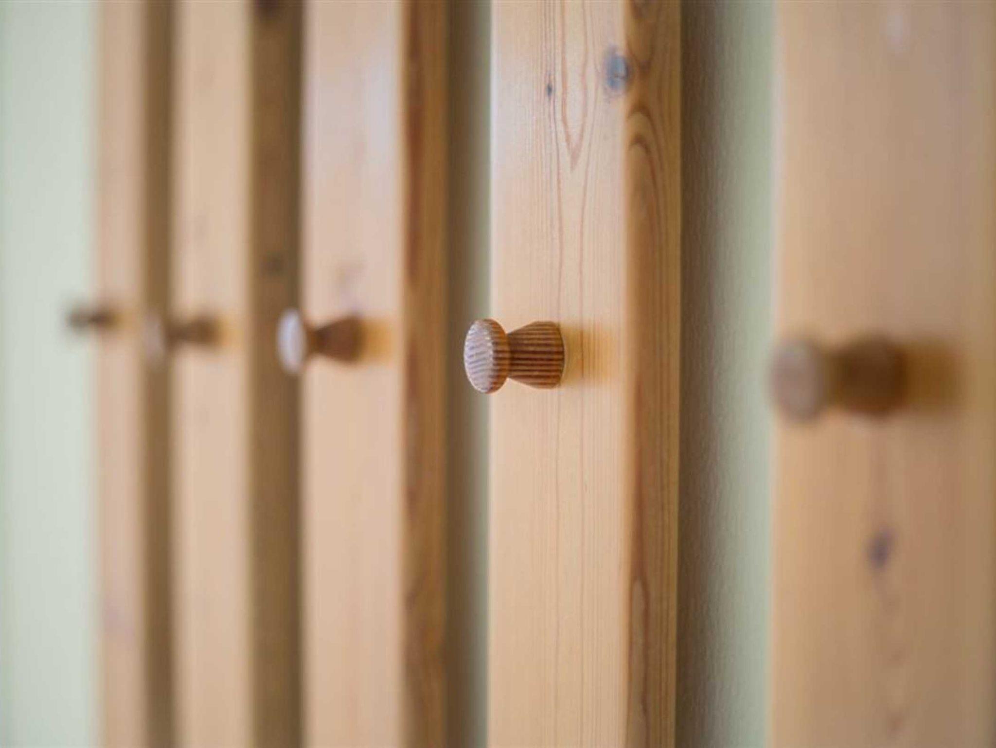 Flur mit Garderobe, Spiegel und Schuhablage im Eingangsbereich.