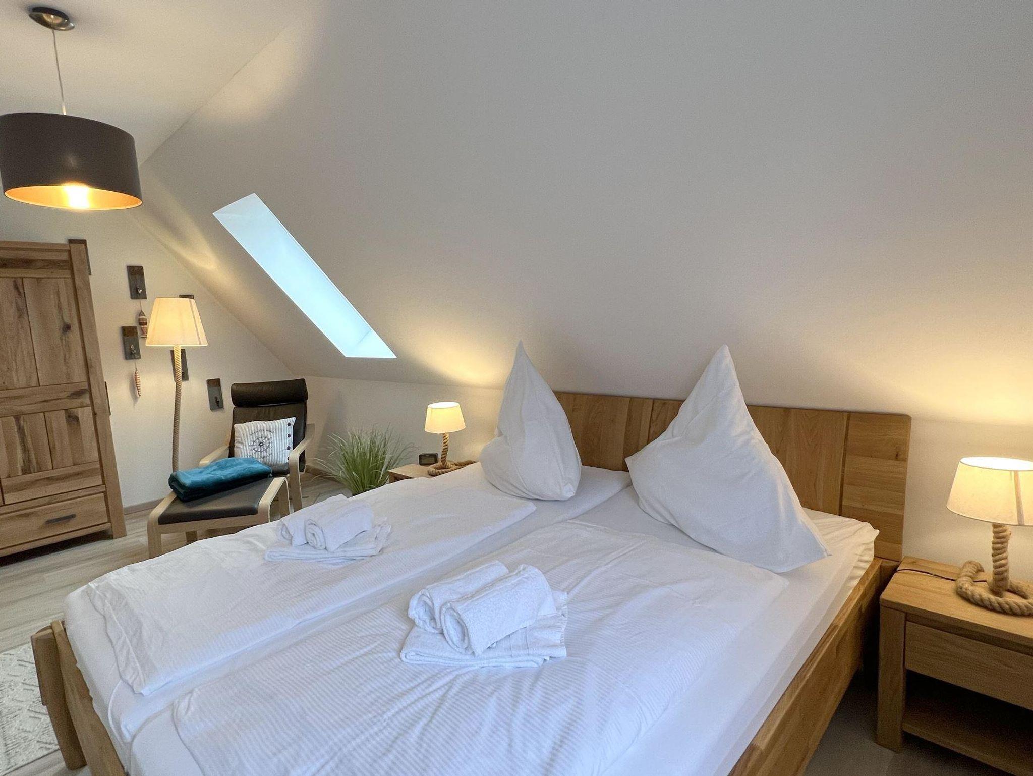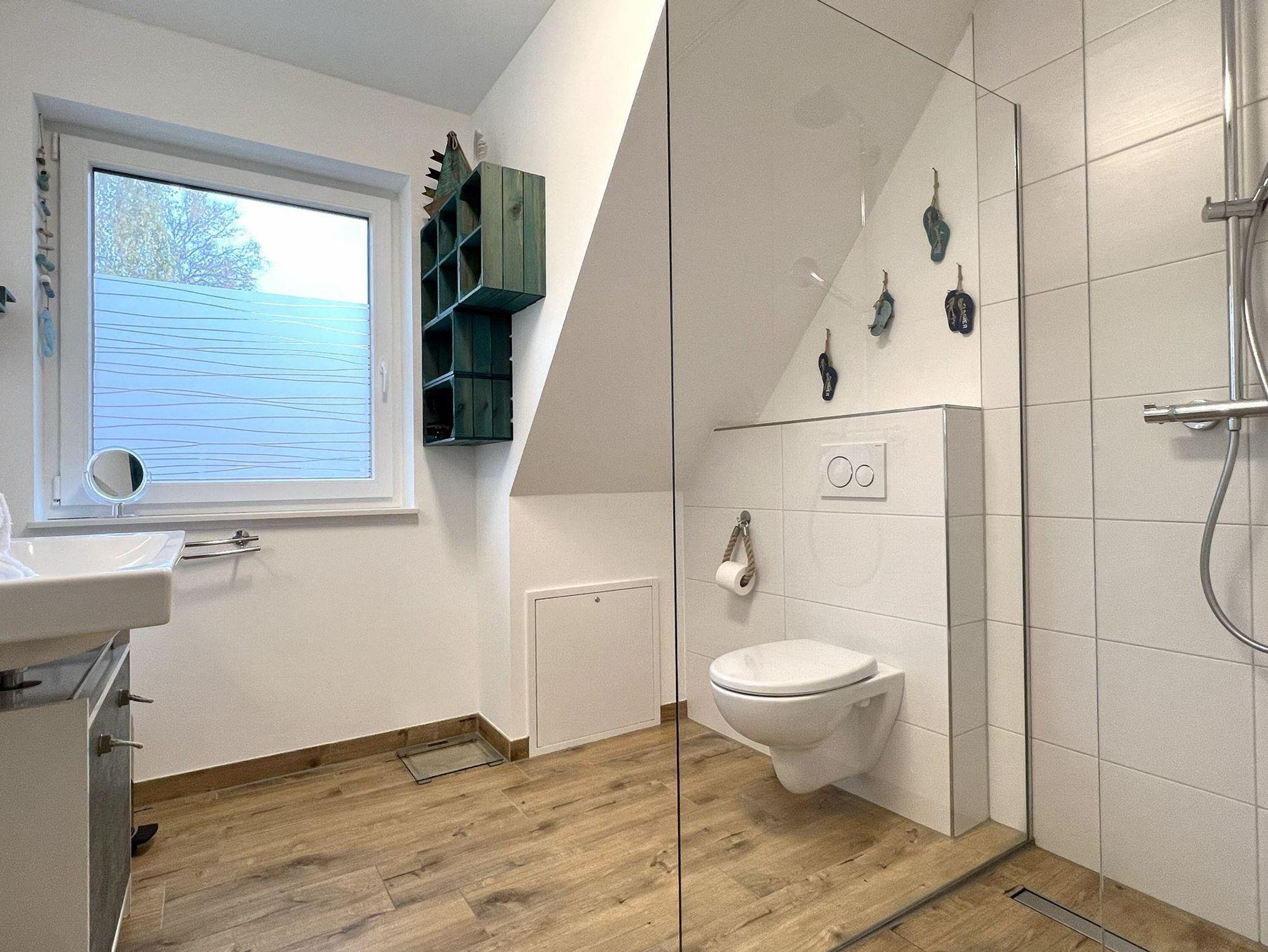 Im Erdgeschoss befindet sich ein offener Wohn-Essbereich mit einer U-förmigen, umfangreich ausgestatteten Küche. Am Morgen genießen Sie einen ersten Kaffee am Küchentresen, holen Brötchen beim nahegelegenen Bäcker und sitzen zusammen bei einem gemeinsamen Frühstück am Esstisch. Im Wohnbereich lädt eine Sofalandschaft zum Entspannen am Kaminofen ein. Hier befindet sich auch ein großer Fernseher, der - wie auch das WLAN - kostenlos genutzt werden kann. Über einen ebenerdigen Zugang gelangen Sie auf die möblierte Terrasse des Hauses. Dort locken zudem zwei Sonnenliegen, ein Sonnenschirm und ein Strandkorb nach draußen. In der umlaufend angelegten Dünenlandschaft befindet sich sogar eine Außensauna, ein Highlight für Saunabegeisterte. Am Ende eines ereignisreichen Urlaubstages finden Sie Erholung in einem der drei Schlafzimmer, von denen zwei mit Doppelbetten und eines mit zwei Einzelbetten ausgestattet ist. Zusätzlich befindet sich ein Babyreisebett und ein Hochstuhl im Objekt. Besonders schön ist, dass gleich zwei Bäder mit ebenerdigen Duschen im EG und im 1.OG vorhanden sind, ebenso eine Waschmaschine, ein Trockner und ein Wäschetrockenständer. Ihr Auto findet Platz auf einem zugehörigen Stellplatz vor dem Haus.