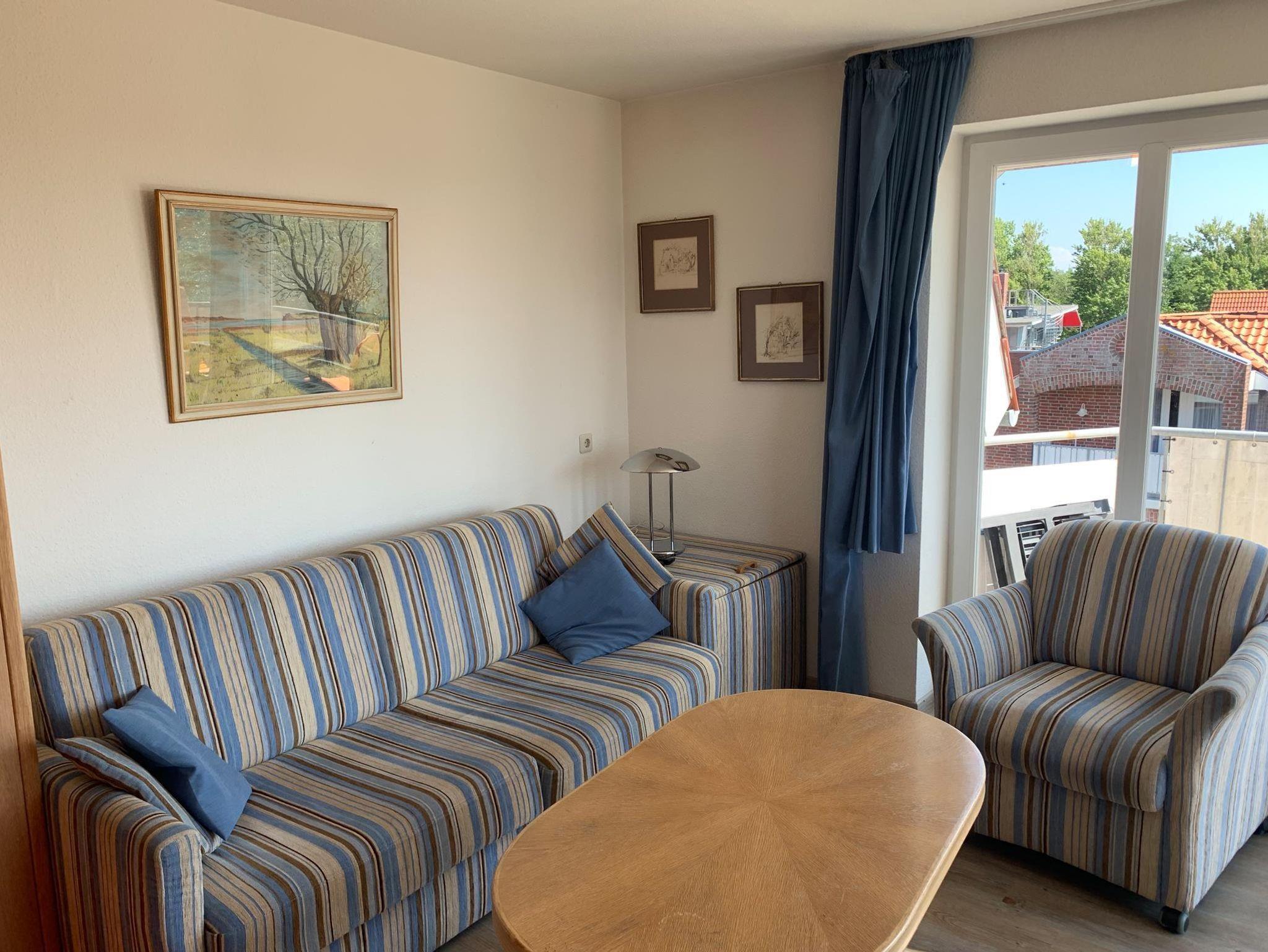 Meerblick für 4, das bietet die sehr gemütliche 2-Zimmer-Ferienwohnung Hauke-Haien Nr. 18 vom großen, sonnigen Süd-West-Balkon im 4.OG. Nachts können Sie sich auf der modernen Schlafcouch im Wohnzimmer oder im Doppelbett im Schlafzimmer erholen. In der Küche finden Sie einen 4-Plattenherd und eine Spülmaschine. Das modernisierte Bad ist schön hell gefliest.