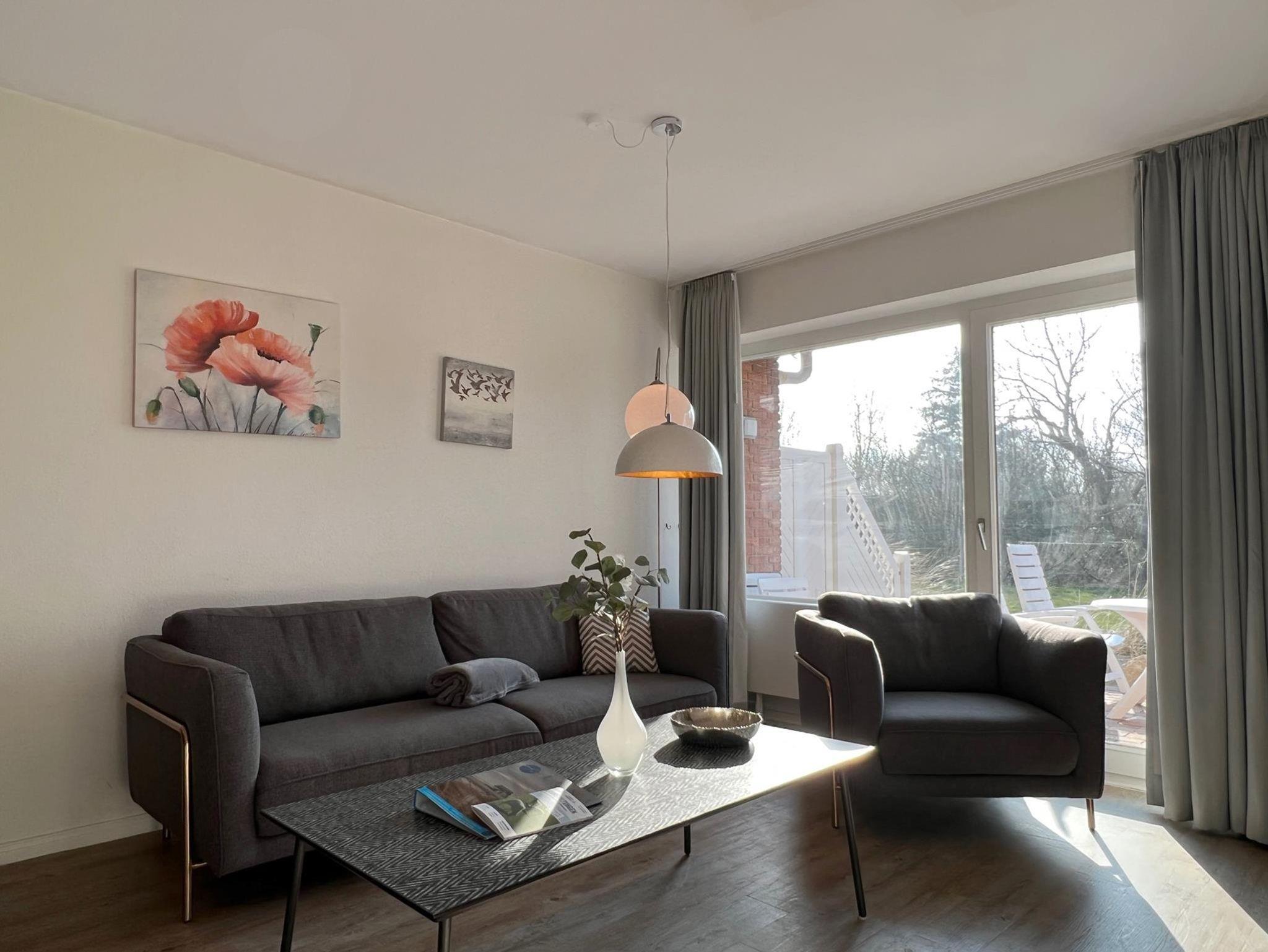 Das über 10.000 qm große Appartementhausgrundstück, eingerahmt von alten, landtypischen Bäumen ist parkähnlich mit Liegewiesen für unsere Gäste angelegt. Ein kurzer Weg, ca 100m, und Sie sind bereits im Dünengelände und am Strand.