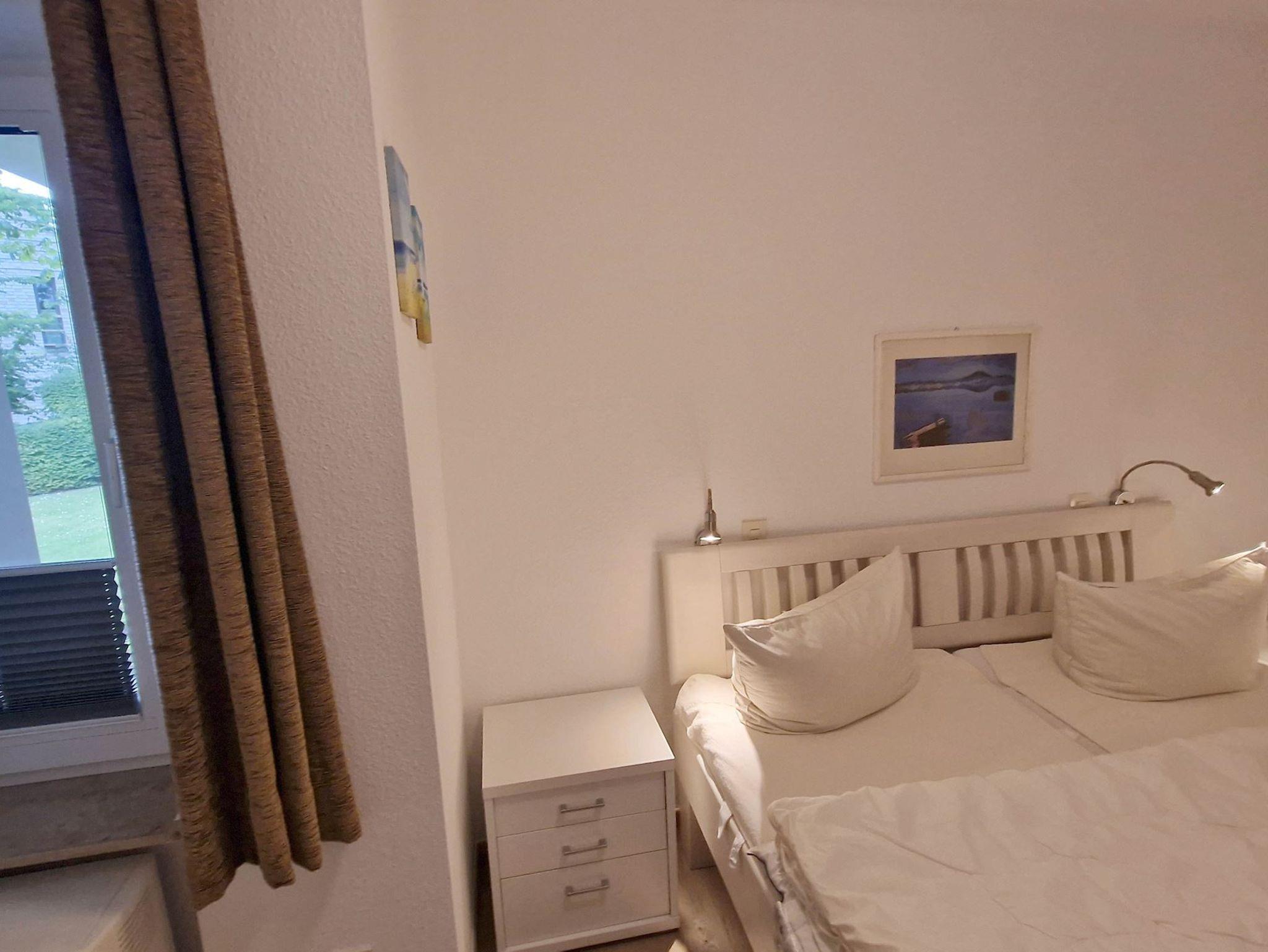 Erholsame Nächte: Im Schlafzimmer erwartet Sie ein komfortables Doppelbett, das Ihnen nach einem langen Strandtag erholsamen Schlaf bietet.