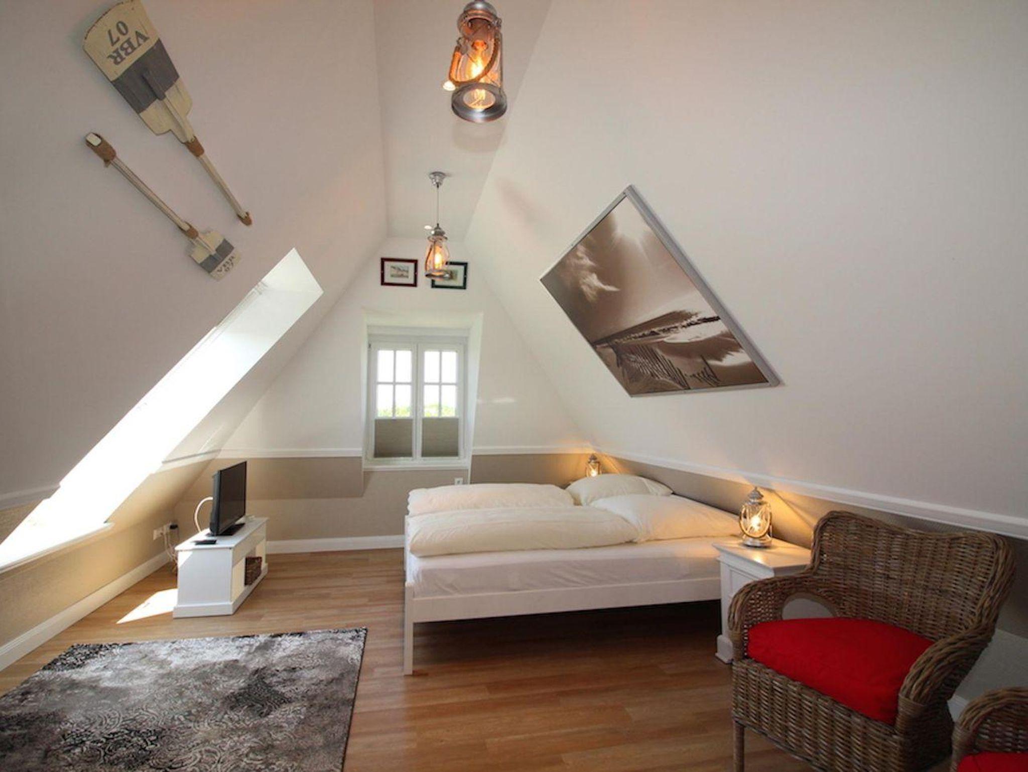 Im Erdgeschoss befindet sich der lichtdurchflutete Wohnraum mit TV, Kamin, einer offenen Küche sowie einem stilvollen Essbereich mit gemütlicher Eckbank. Die Wohnräume sind mit exklusiven Möbeln ausgestattet. Die Küche verfügt über hochwertige Elektrogeräte. An den Wohnbereich schließen sich ein Flur mit eingebauter Garderobe, ein Abstellraum und ein Gästebad an. Ebenso ist Ebenerdig ein Doppelschlafzimmer mit Einbauschränken. Das gesamte Erdgeschoss ist mit geschmackvollen Fußbodenfliesen versehen, die über eine Fußbodenheizung beheizt werden können. Über eine Holztreppe gelangt man in das mit Parkett ausgelegte Obergeschoss. Dieses verfügt ebenfalls über eine Fußbodenheizung. Die beiden Schlafzimmer, jeweils mit einem Doppelbett, sind ebenfalls mit TV ausgestattet. Einbauschränke gewähren Ihnen hinreichend Ablageflächen. Darüber hinaus befinden sich im Obergeschoss zwei weitere, geräumige Bäder mit Dusche. Für zusätzliche Entspannung sorgt eine Sauna mit Sternenhimmel. Vom Obergeschoss führt die Holztreppe hinauf in das Dachgeschoss. Ein drittes Schlafzimmer mit Doppelbett und großen Fenstern mit Blick bis zum Wasser erfüllt jeden Urlaubstraum.