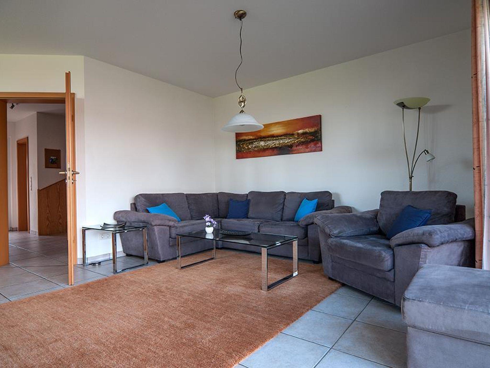 Schön, hell gelangen Sie durch den Eingangsbereich in das Wohnzimmer mit SAT Flachbildschirm, DVD-Player, kostenloses Telefonieren innerhalb Deutschlands, einem Safe und einer Hifi Anlage.