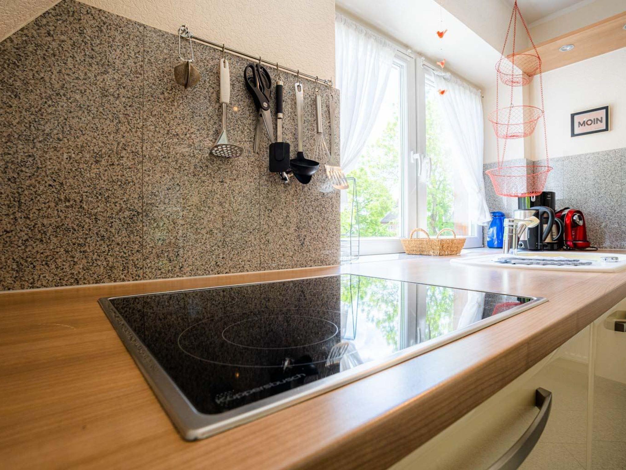 Pkw-Stellplatz, Fahrradständer und Elektro-Pkw-Ladestation (kostenpflichtig) vorhanden. Die Waschmaschine und der Trockner im Bad dürfen kostenlos genutzt werden. Kinderhochstuhl und -reisebett (nur Gestell) kostenlos vorhanden. Kostenloses WLAN (Glasfaser).