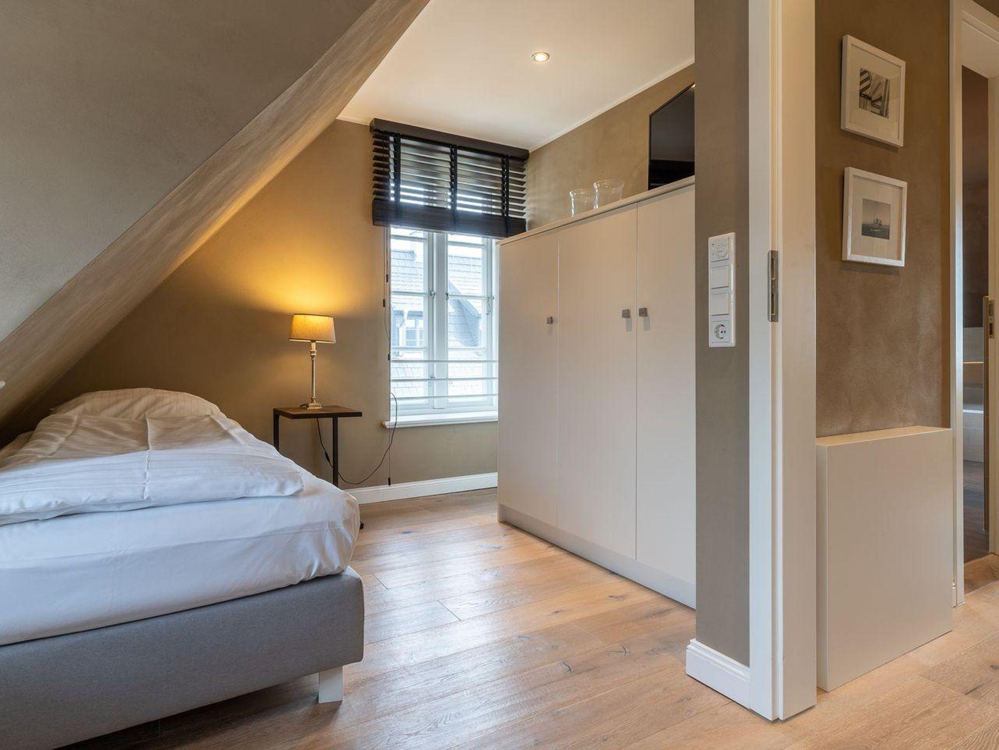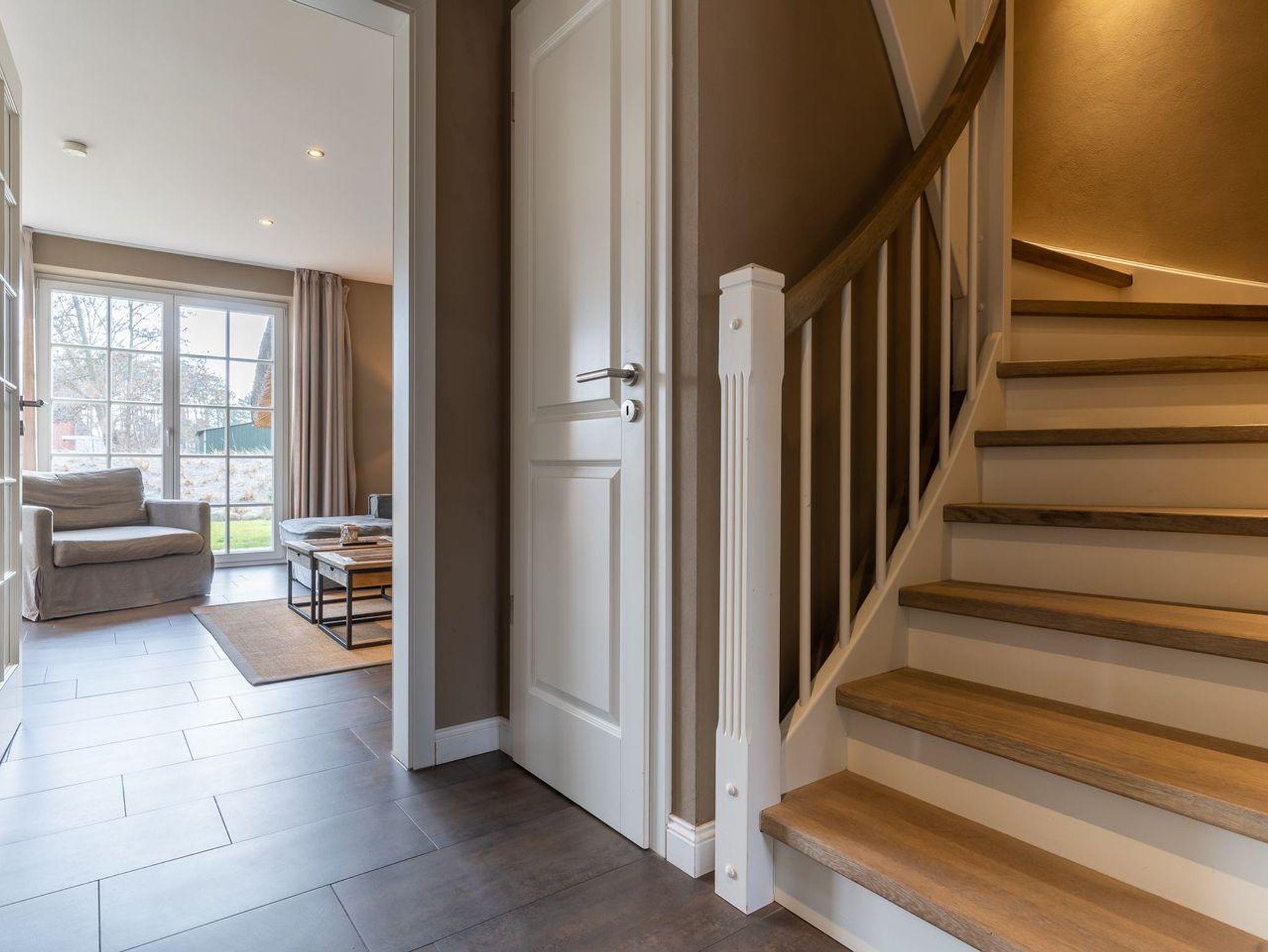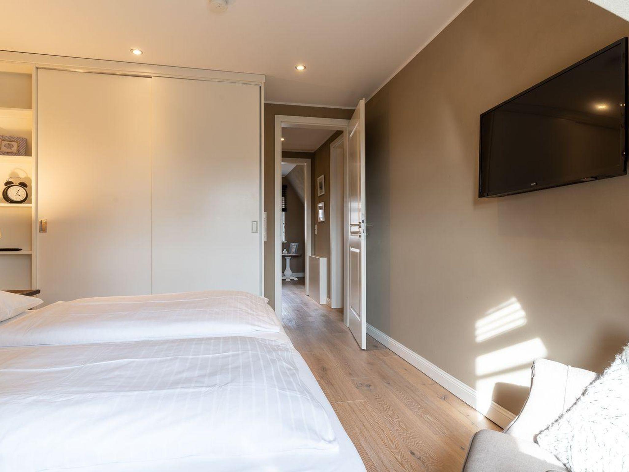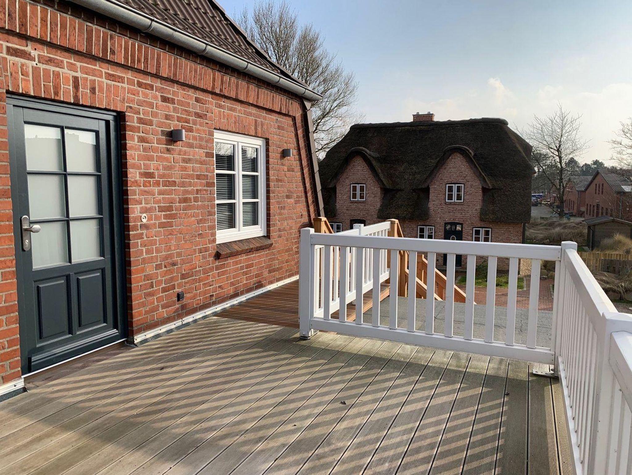Die luxuriöse Haushälfte unter Reet verfügt über ca. 108 m² Wohnfläche und bietet Platz für 6 Personen. Im Erdgeschoss befindet sich der lichtdurchflutete Wohnraum mit TV, Kamin, einer offenen Küche sowie einem stilvollen Essbereich. Die Wohnräume sind mit exklusiven Möbeln von Riviera Maison ausgestattet. Die Küche verfügt über hochwertige Elektrogeräte. An den Wohnbereich schließen sich ein Flur mit eingebauter Garderobe, ein Hauswirtschaftsraum und ein Duschbad an. Das gesamte Erdgeschoss verfügt über geschmackvolle Fußbodenfliesen, die über eine Fußbodenheizung (Erdwärme) beheizt werden können. Über eine Holztreppe gelangt man in das mit Parkett ausgelegte Obergeschoss. Dieses verfügt ebenfalls über eine Fußbodenheizung. Die beiden Schlafzimmer, eines mit einem Boxspring-Doppelbett und eines mit 2 Boxspring-Einzelbetten, sind ebenfalls jeweils mit TV ausgestattet. Einbauschränke gewähren Ihnen hinreichend Ablageflächen. Darüber hinaus befindet sich im Obergeschoss ein weiteres, geräumiges Bad mit Dusche und Badewanne. Vom Obergeschoss führt die Holztreppe hinauf in das Dachgeschoss. Hier befindet sich ein zusätzliches Schlafzimmer mit 2 Boxspring-Einzelbetten, die zum Doppelbett zusammen geschoben werden können. Dieses wunderschöne Haus lässt keine Wünsche offen und bringt Sie sofort in Urlaubsstimmung. Das Grundstück mit Stellplatz, großer Rasenfläche und einer geschützten, sonnigen Terrasse ist mit heimischen Pflanzen und einer Düne angelegt. Aus einem Strandkorb können Sie den Blick auf das Haus oder die Düne genießen. Für zusätzliche Entspannung sorgt eine großzügige Gartensauna. Carpe Diem!