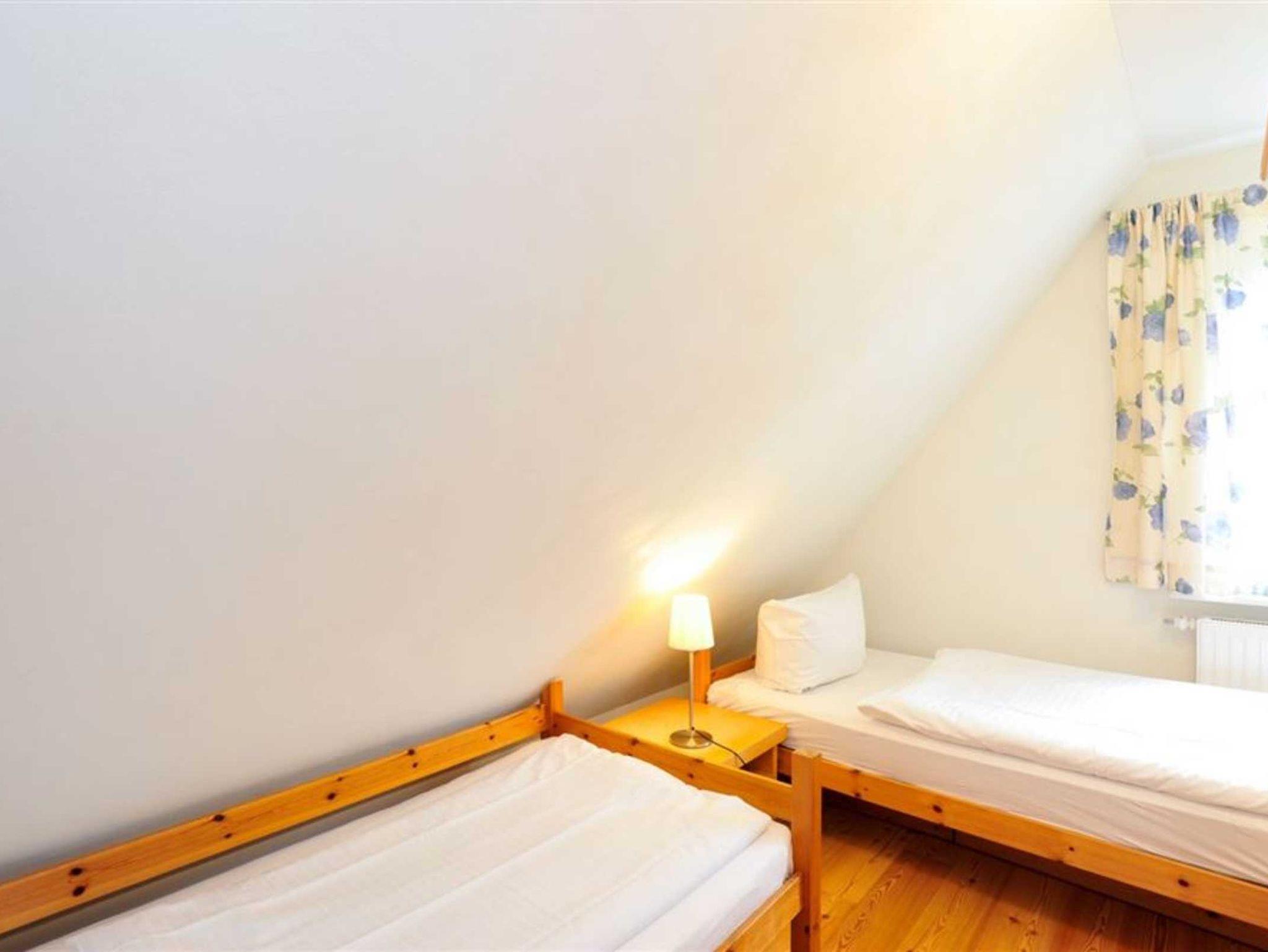 2. Schlafzimmer mit 2 Einzelbetten (je 90x190cm), Regalschrank und Stuhl.