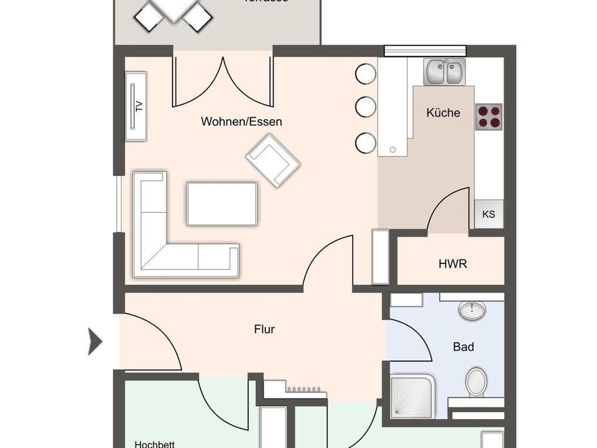 Das großzügige 60m² Appartement ist mit stilvollen Möbeln eingerichtet. Ein gemütliches Wohnzimmer mit Ecksofa und TV laden zum Chillen ein. Die offene Wohnküche ist mit hochwertigen Geräten voll ausgestattet. Das Duschbad ist großzügig gestaltet und bietet genügend Platz für Ihre Utensilien. Das Schlafzimmer mit 180er Doppelbett und Flatscreen TV sorgen für ruhevolle Erholung. Ein weiteres Doppelzimmer mit 2 großzügigen Einzelbetten 90x200cm in Etagenform bietet Platz für weitere 2 Personen. Alle Räume haben Außenrollos und sorgen für ruhevolle Erholung. Die Wohnung ist mit sehr viel Liebe zum Detail ausgestattet und traumhaft lichtdurchflutet.
