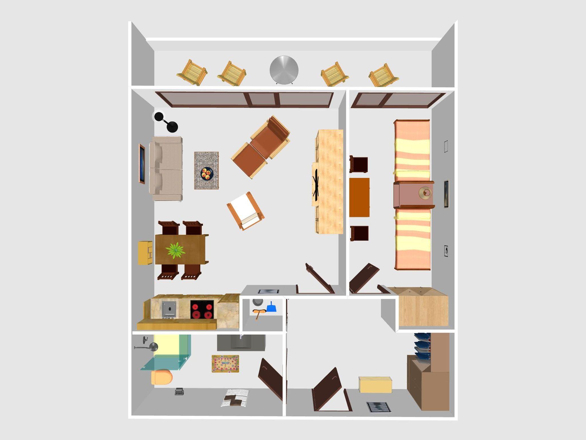 (1 Wohnzimmer, 1 Schlafzimmer, 1 Badezimmer)