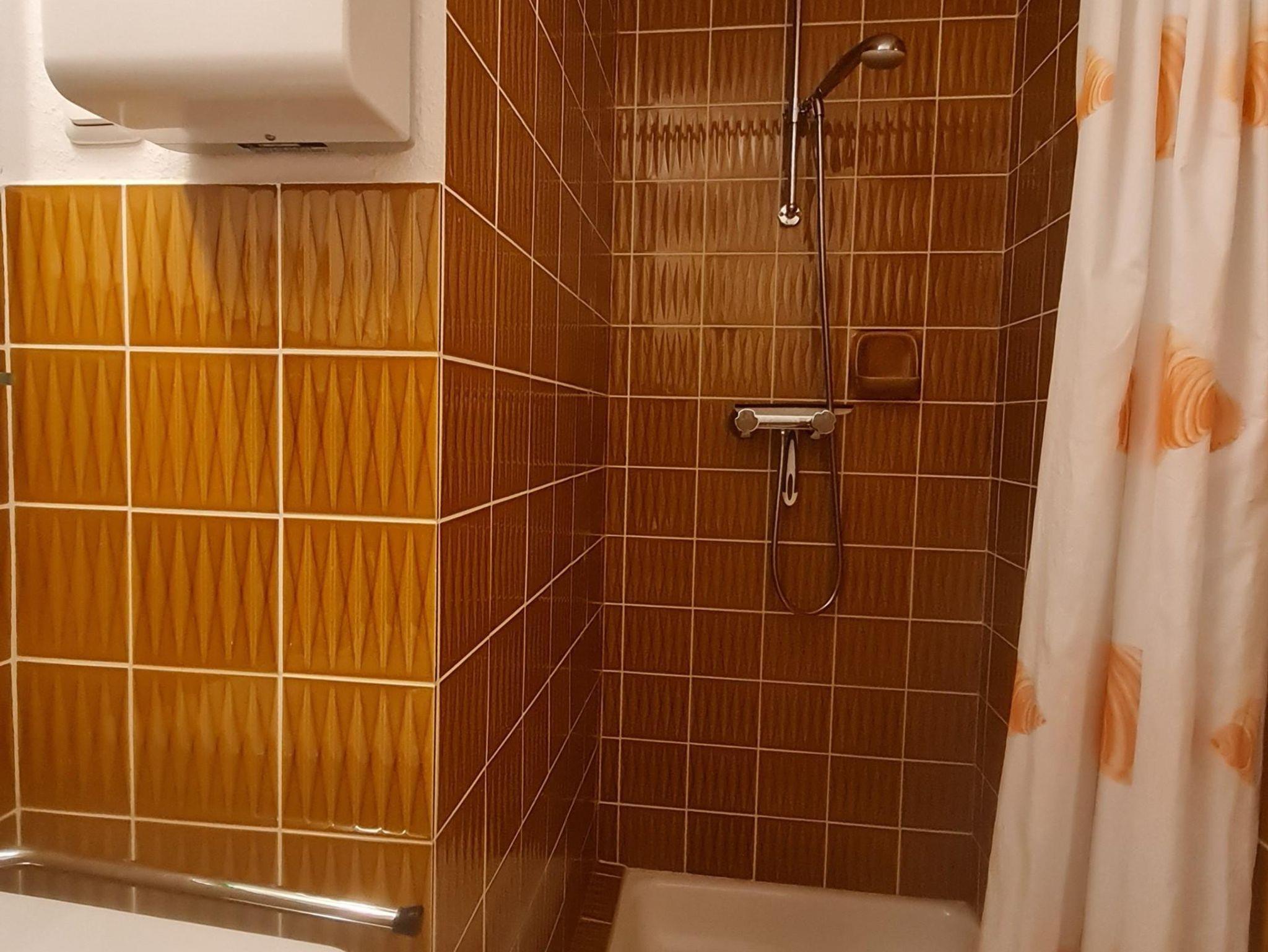 Badezimmer (Duschbad) mit Dusche, WC und Föhn.