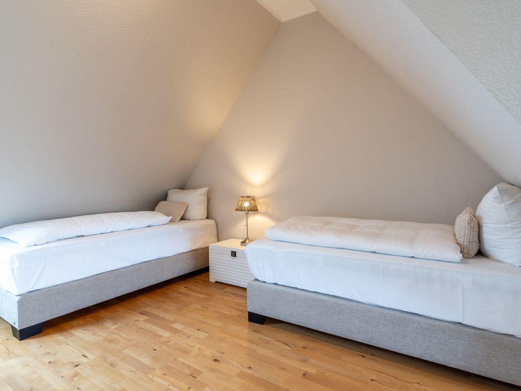 Bei der Ausstattung der Unterkunft wurde an alles gedacht. Auf zwei Etagen finden Sie drei geschmackvoll eingerichtete Schlafzimmer, die eine ruhige und erholsame Nachtruhe versprechen. Zudem steht Ihnen ein Gäste-WC sowie ein modernes Badezimmer mit Dusche zur Verfügung.