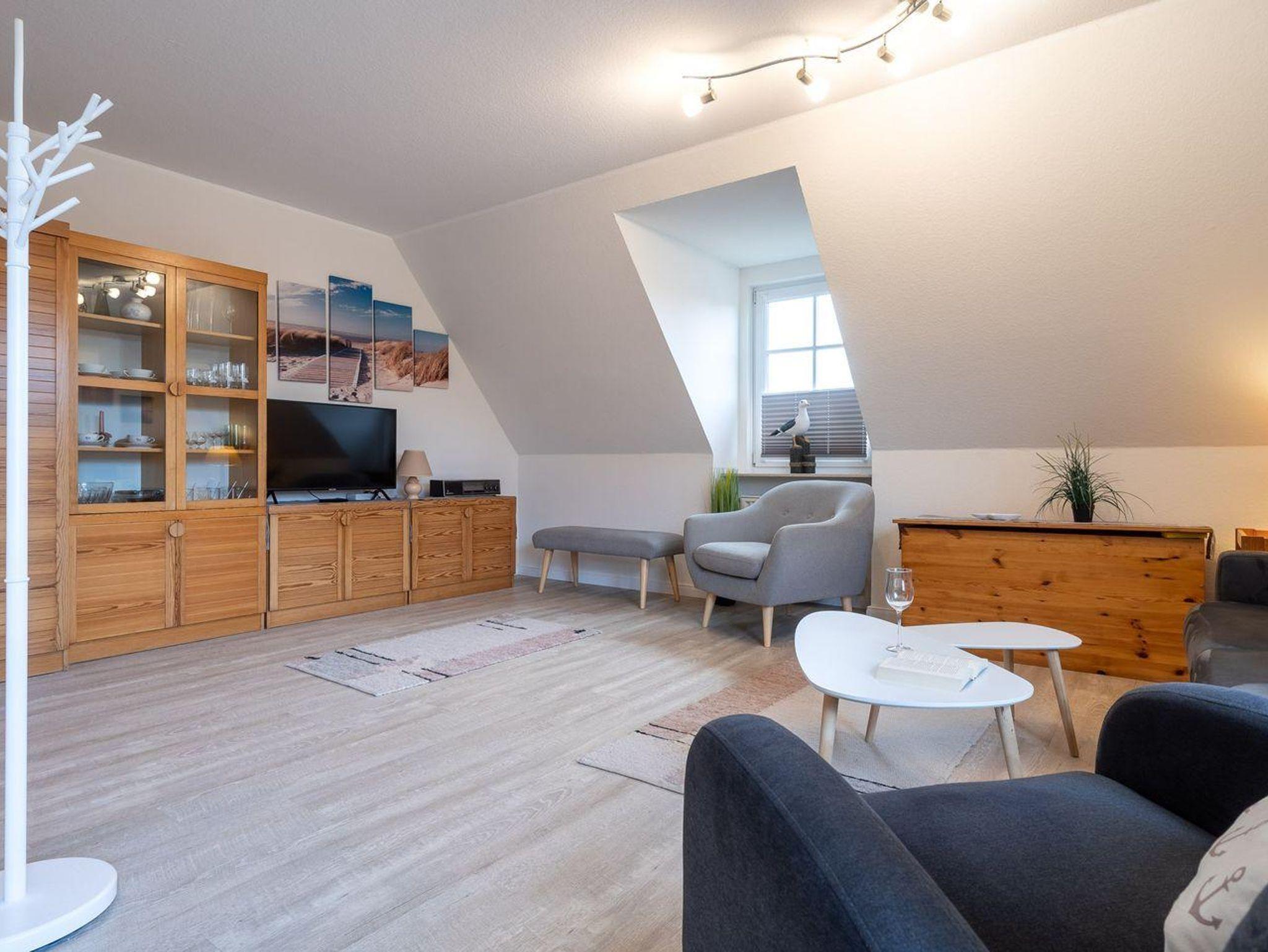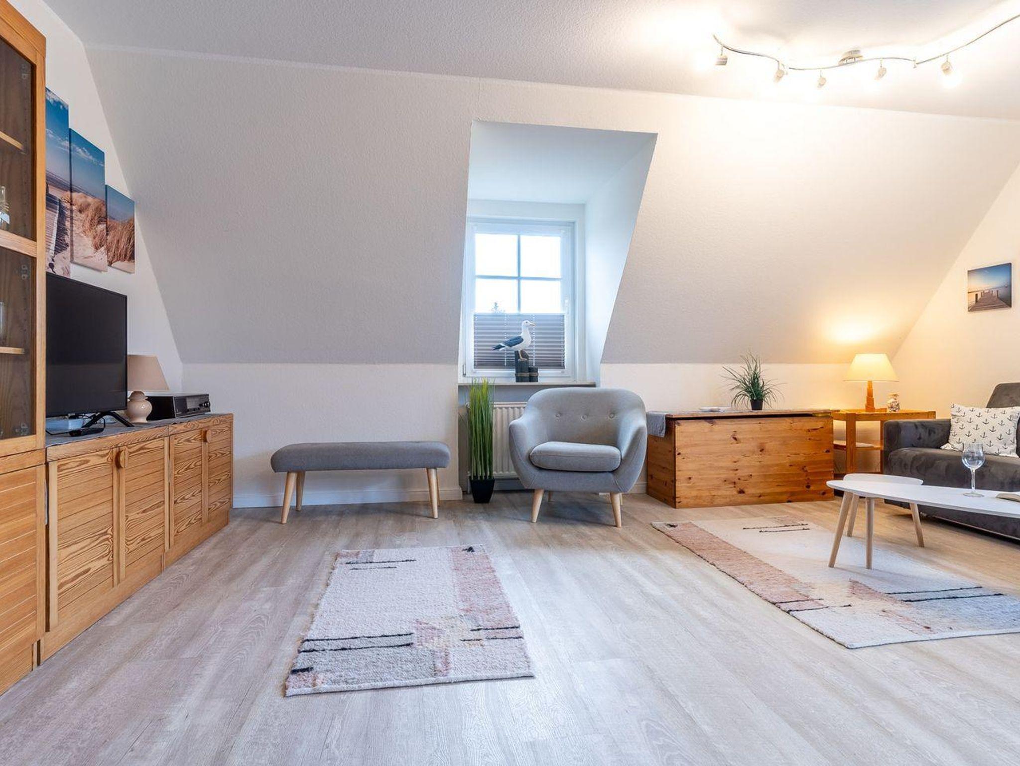 Willkommen in Ihrer gemütlichen Ferienwohnung im Herzen von St. Peter-Ording, Ortsteil Dorf! Auf großzügigen 48 Quadratmetern bietet diese stilvolle Unterkunft im 1. Obergeschoss und Dachgeschoss ausreichend Platz für bis zu 4 Personen.