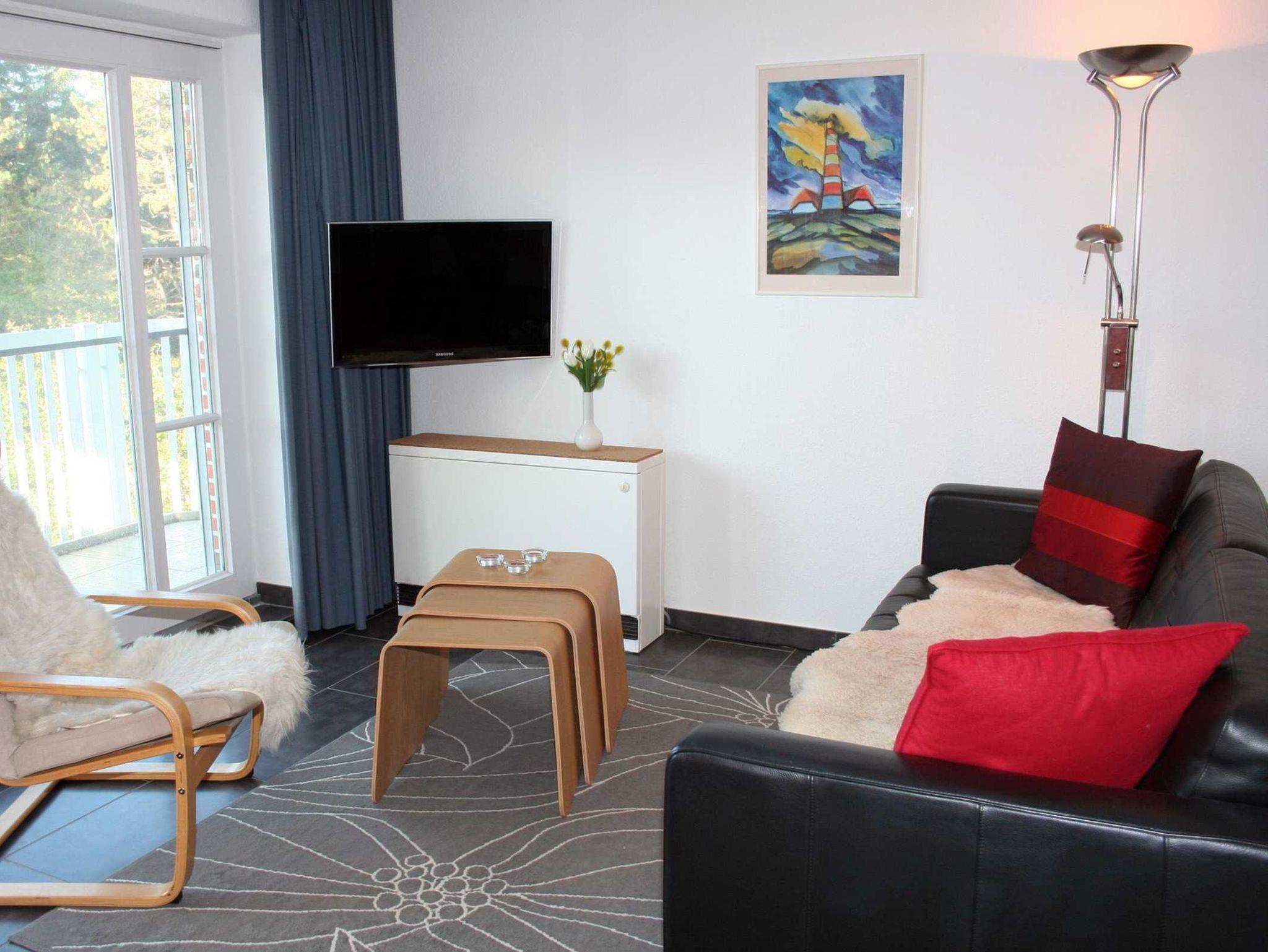 FeWo in St. Peter-Ording nur wenige Minuten vom Strand 2 Personen können sich in der modern ausgestatteten 2-Zimmer Ferienwohnung Nr. 5 im Haus Brandung so richtig wohlfühlen. Im 1. OG des Hauses erwartet Sie auf 47 qm ein wohnlich und freundlich eingerichtetes Ferien-Appartement mit Schlafzimmer, Badezimmer und großzügigem Wohnzimmer mit integrierter Küche, mit Ceranfeld, Backofen, Kühlschrank und Spülmaschine, sowie einem großen Eßtisch. Der große und teilüberdachte Balkon, elektrische Markise inkl., mit Blick auf den direkt angrenzenden Kurwald wird Ihnen gefallen. Die Wohnung ist vollständig gefliest und daher besonders allergikerfreundlich, WLAN steht kostenlos zur Verfügung. PKW-Stellplatz auf dem Grundstück, Nr. 5