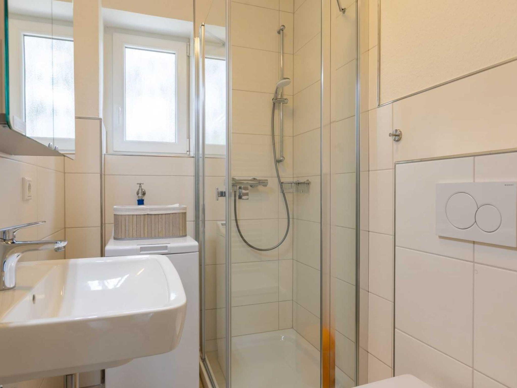 2. Badezimmer (OG) mit Dusche, WC, Waschmaschine und Tageslicht.