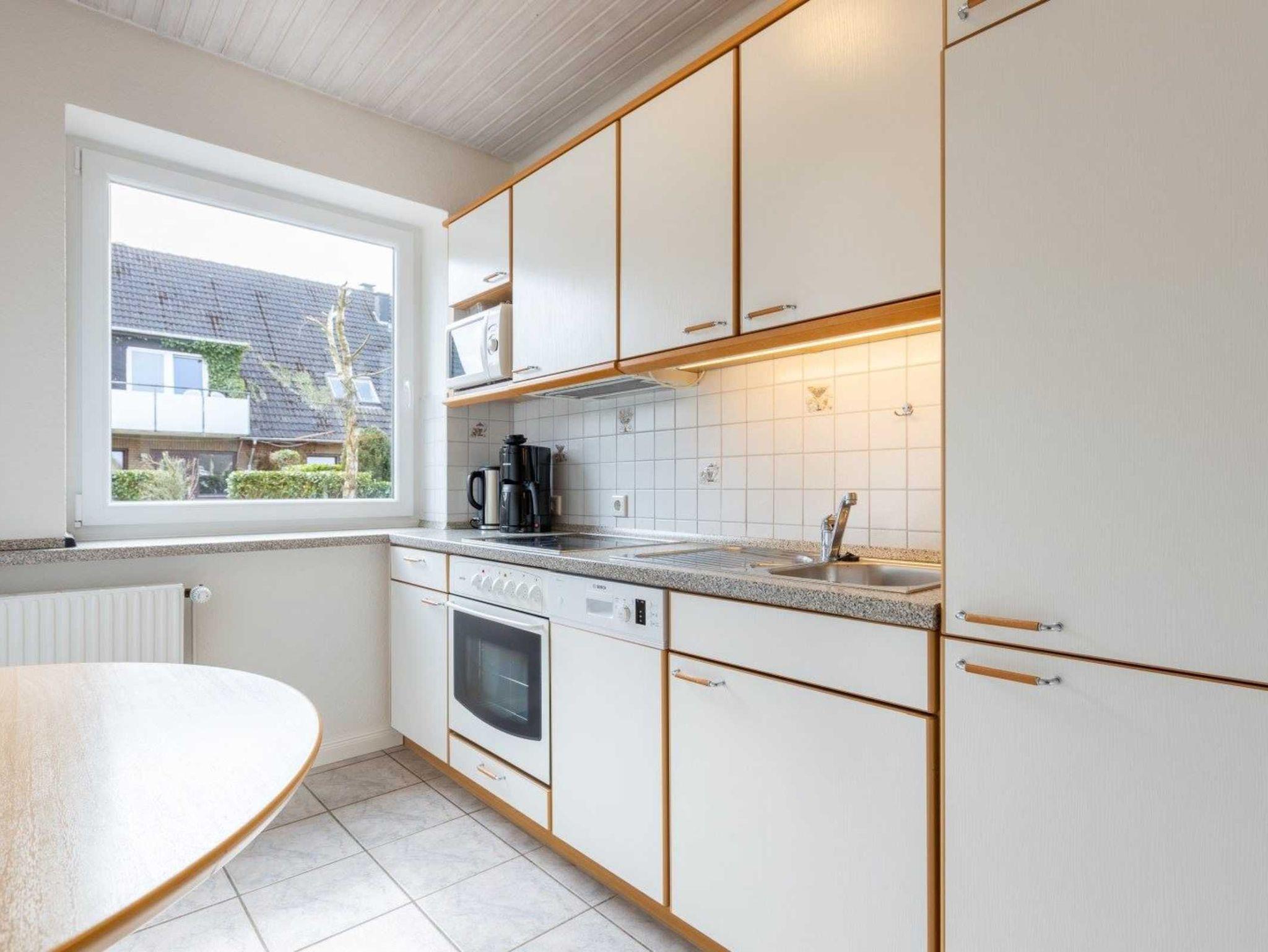 2. Küche (OG) mit Backofen, Mikrowelle, Kühlschrank mit Gefrierfach und Geschirrspüler.