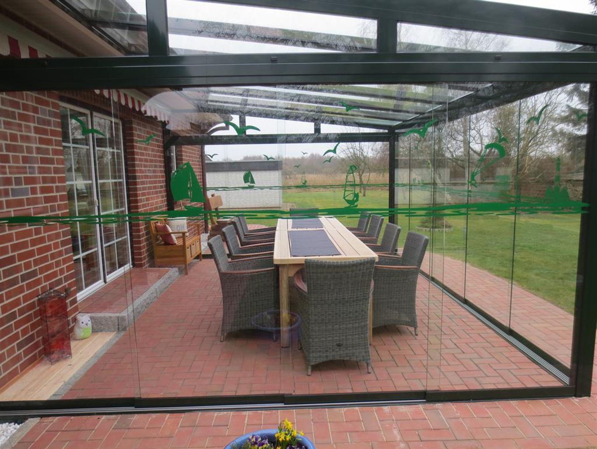Auf der großen sonnigen Terrasse erwarten Sie eine Sitzgruppe, Strandkorb, Sonnenmarkise und Gartengrill. Der Wintergarten mit seinen verschiebbaren Elementen sorgt auch bei nordischem Wetter für Terrassenfeeling. Der schöne Garten lädt zum Sonnenbaden und Spielen ein.